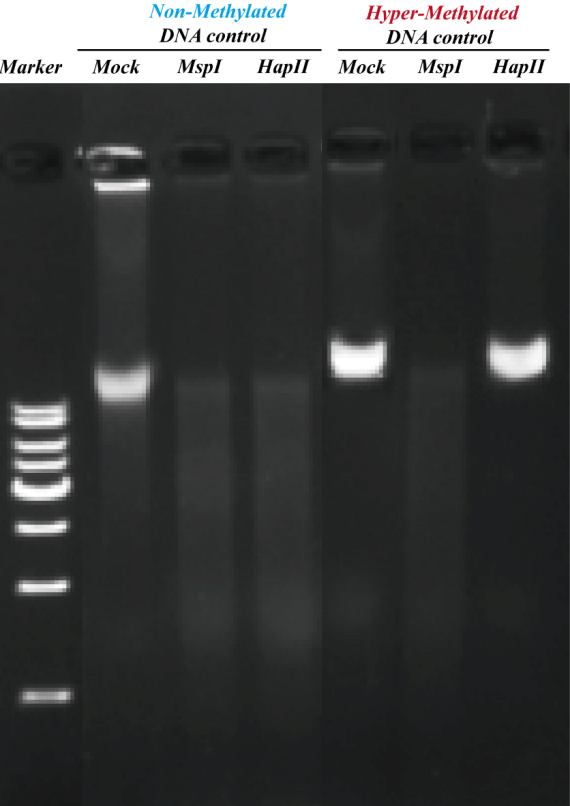 2. HpaII對CpG甲基化敏感,不能酶切甲基化的DNA,只能酶切非甲基化的DNA。 | ||||