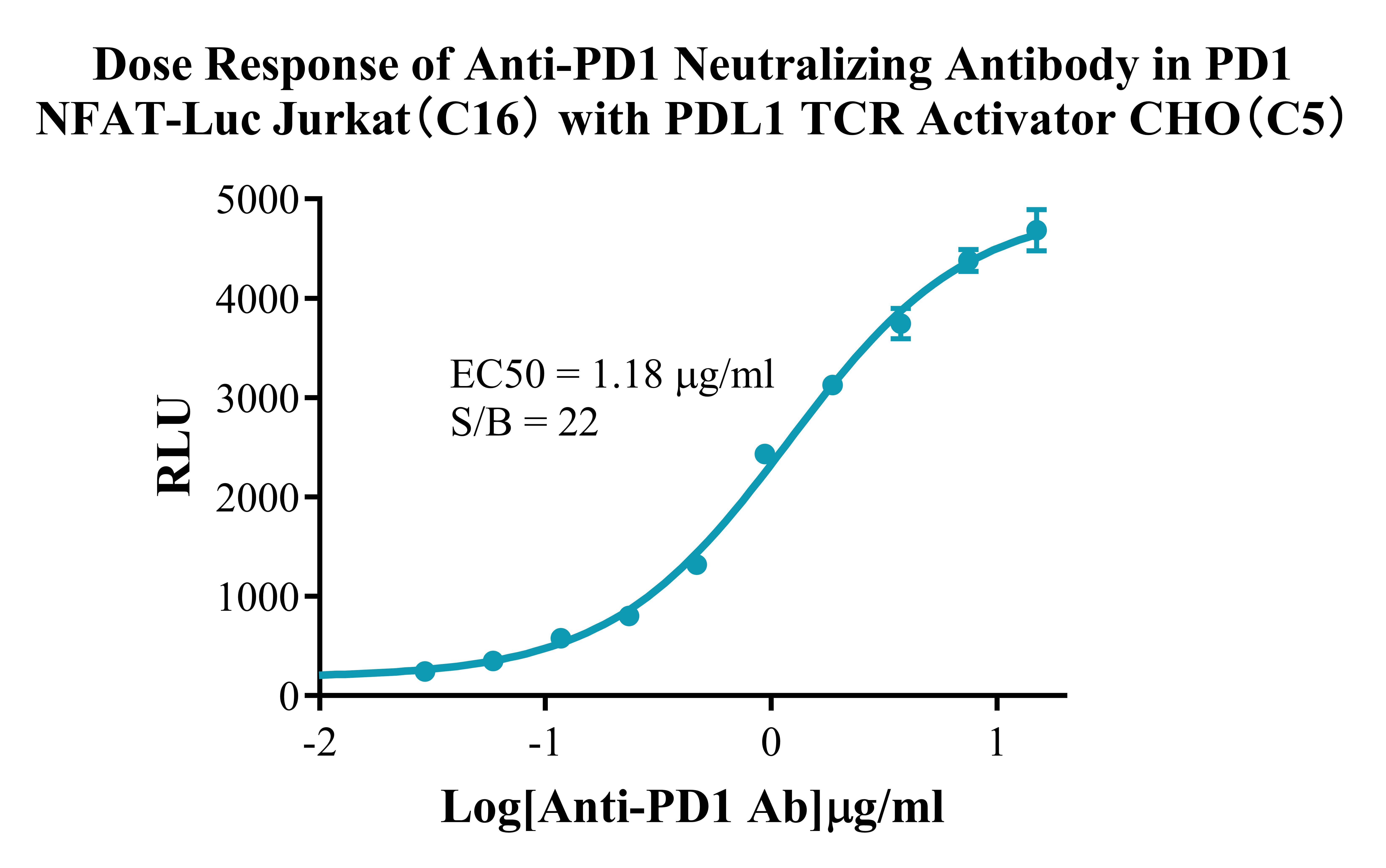 Figure 3.Detect Luciferase assay by Ultra Luciferase Detection Kit CBPH0001(we strongly suggest to purchase from Cobioer). Dose response of Anti-PD1 Neutralizing Antibody in PD1 NFAT-Luc Jurkat(C16) with PDL1 TCR Activator CHO(C5).