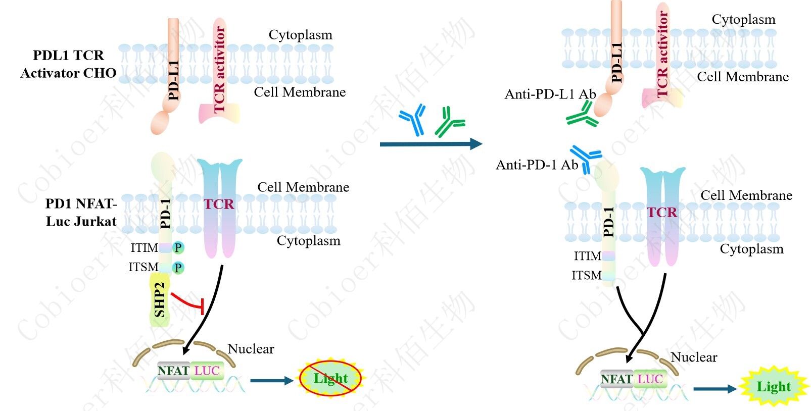 Figure 1. PDL1 TCR Activator CHO 細(xì)胞模型原理圖