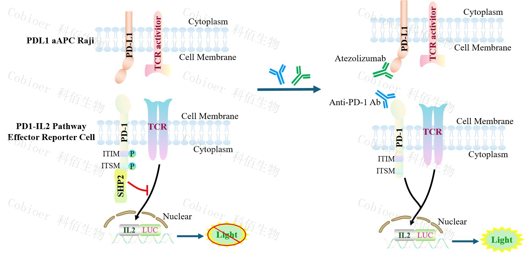 PD1-IL2 Pathway Effector Reporter Cell 報告基因藥靶模型很好的模擬了體內(nèi) PD1&IL2 的信號轉導過程,原理見下圖所示。![]() Figure 1. PD1-IL2 Pathway Effector Reporter Cell 細胞模型原理圖 |