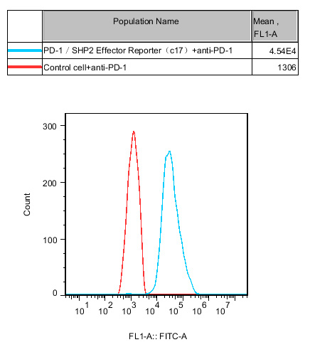 Figure 2. Recombinant PD1/SHP2 Reporter Cell constitutively expressing PD1.