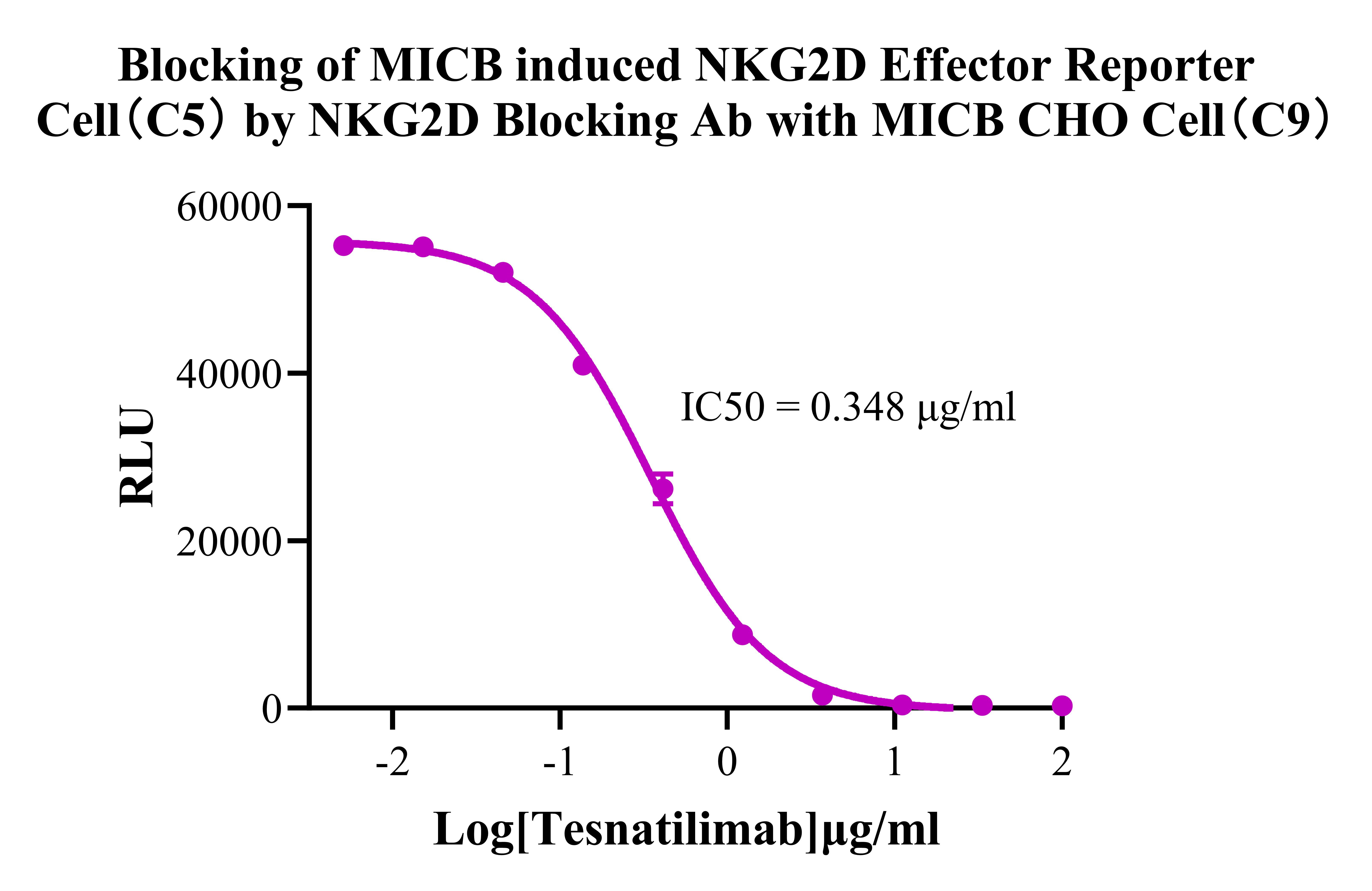![]() Figure 4. Blocking of MICB induced NKG2D Effector Reporter Cell(C5) by NKG2D Blocking Ab with MICB CHO Cell(C9). |