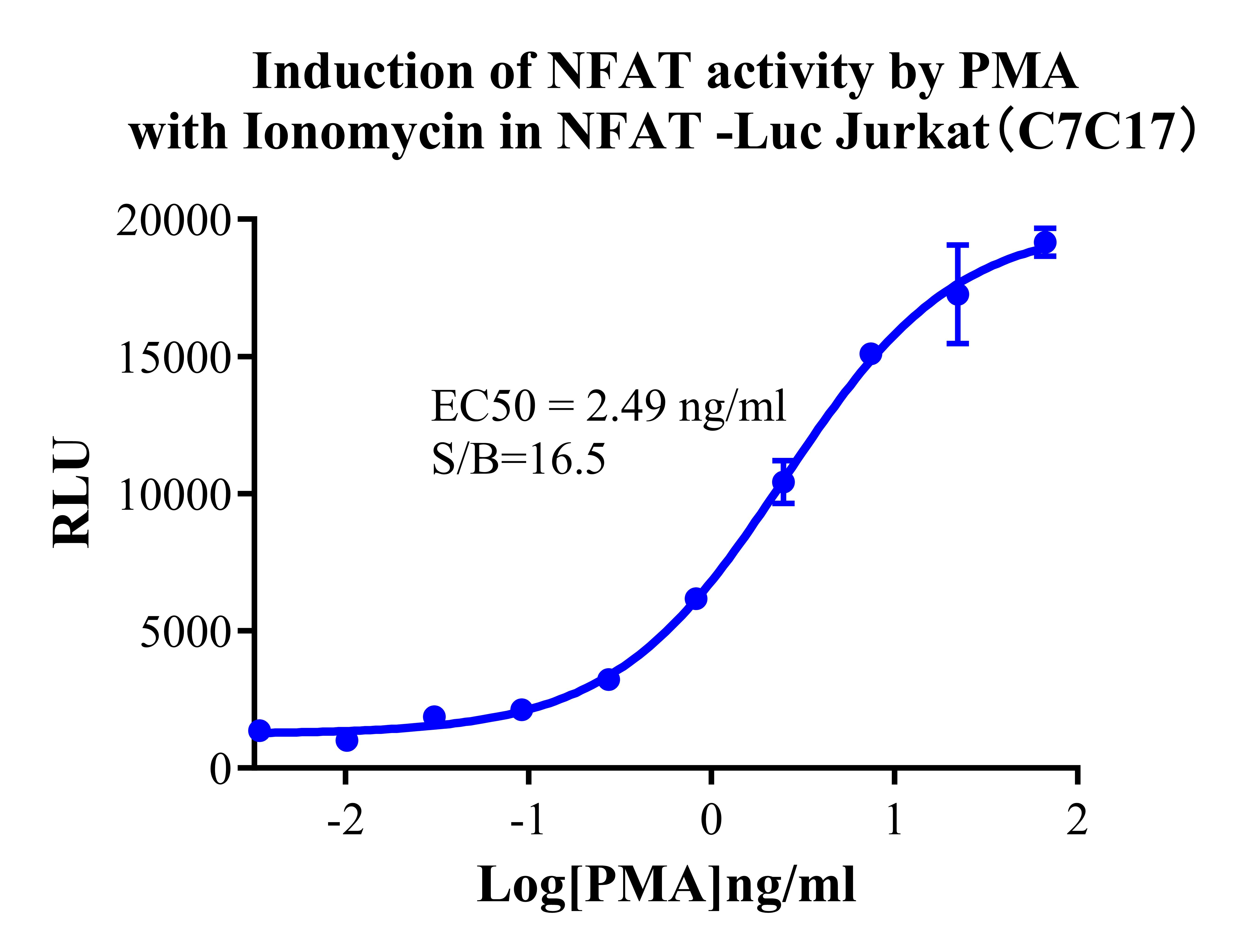 Figure 2.Detect Luciferase assay by Ultra Luciferase Detection Kit CBPH0001(we strongly suggest to purchase from Cobioer). Induction of NFAT activity by PMA with Ionomycin in NFAT-Luc Jurkat(C7C17).
