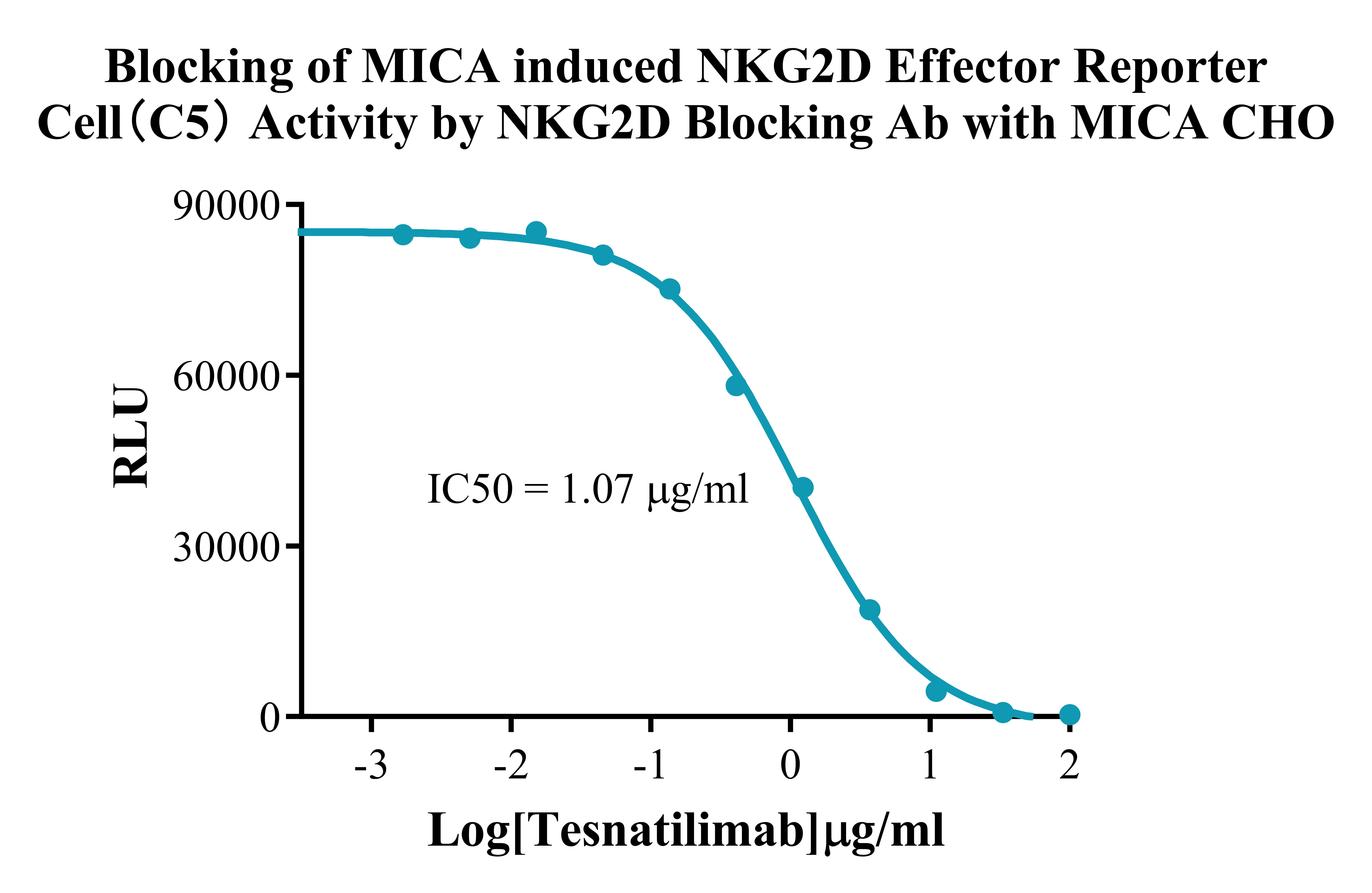Figure 2. Blocking of MICA induced NKG2D Effector Reporter Cells (C5) Activity by NKG2D Blocking Ab with MICA CHO.