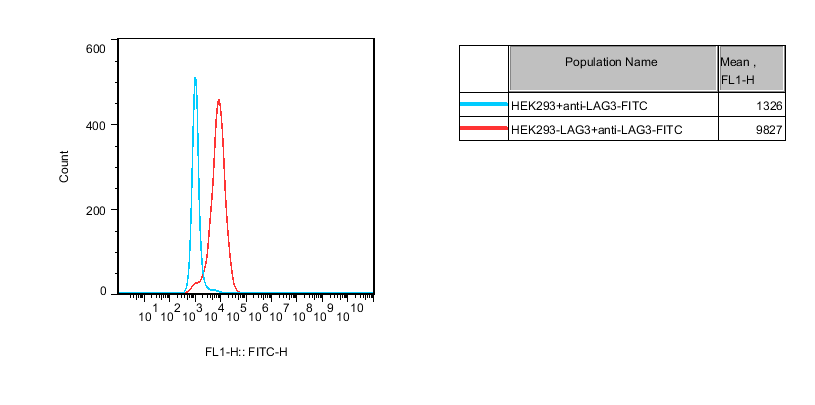 Figure 1. Recombinant HEK293 stably expressing human LAG3 (lymphocyte-activation gene 3, CD223, GenBank Accession # NM_002286).