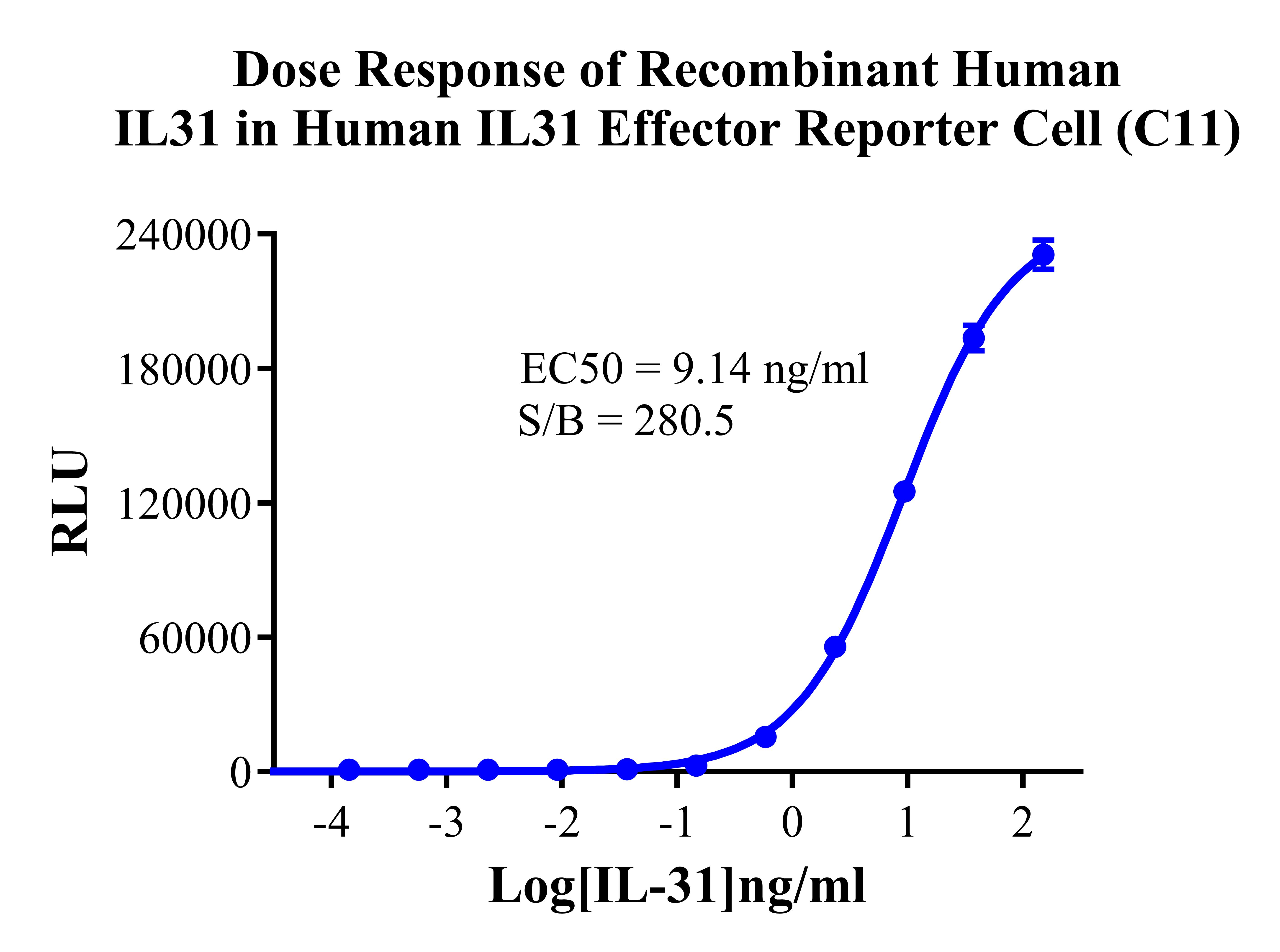 Figure 3. Dose Response of Recombinant Human IL31 in Human IL31 Effector Reporter Cells(C11). |