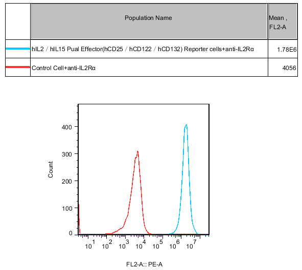Figure 2. Recombinant hIL2/IL15 Dual Effector(hCD25/hCD122/hCD132) Reporter Cell constitutively expressing IL2Rα.