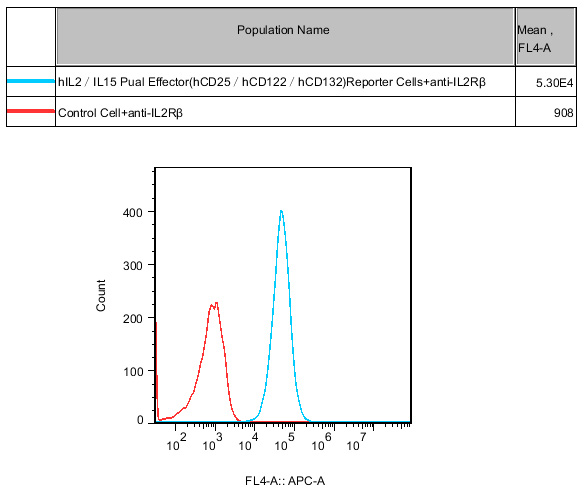 Figure 3. Recombinant hIL2/IL15 Dual Effector(hCD25/hCD122/hCD132) Reporter Cell constitutively expressing IL2Rβ.