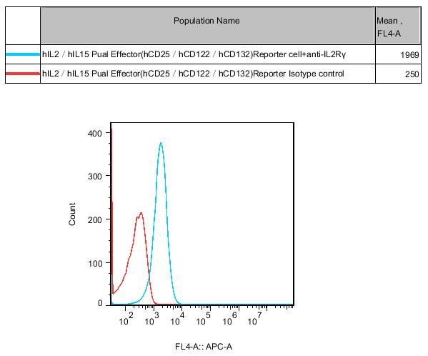 Figure 4. Recombinant hIL2/IL15 Dual Effector(hCD25/hCD122/hCD132) Reporter Cell constitutively expressing IL2Rγ.