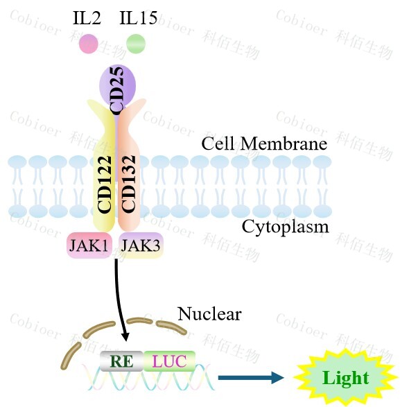 hIL2/IL15(hCD25 hCD122 hCD132Effector Reporter Cell 細(xì)胞模型原理圖