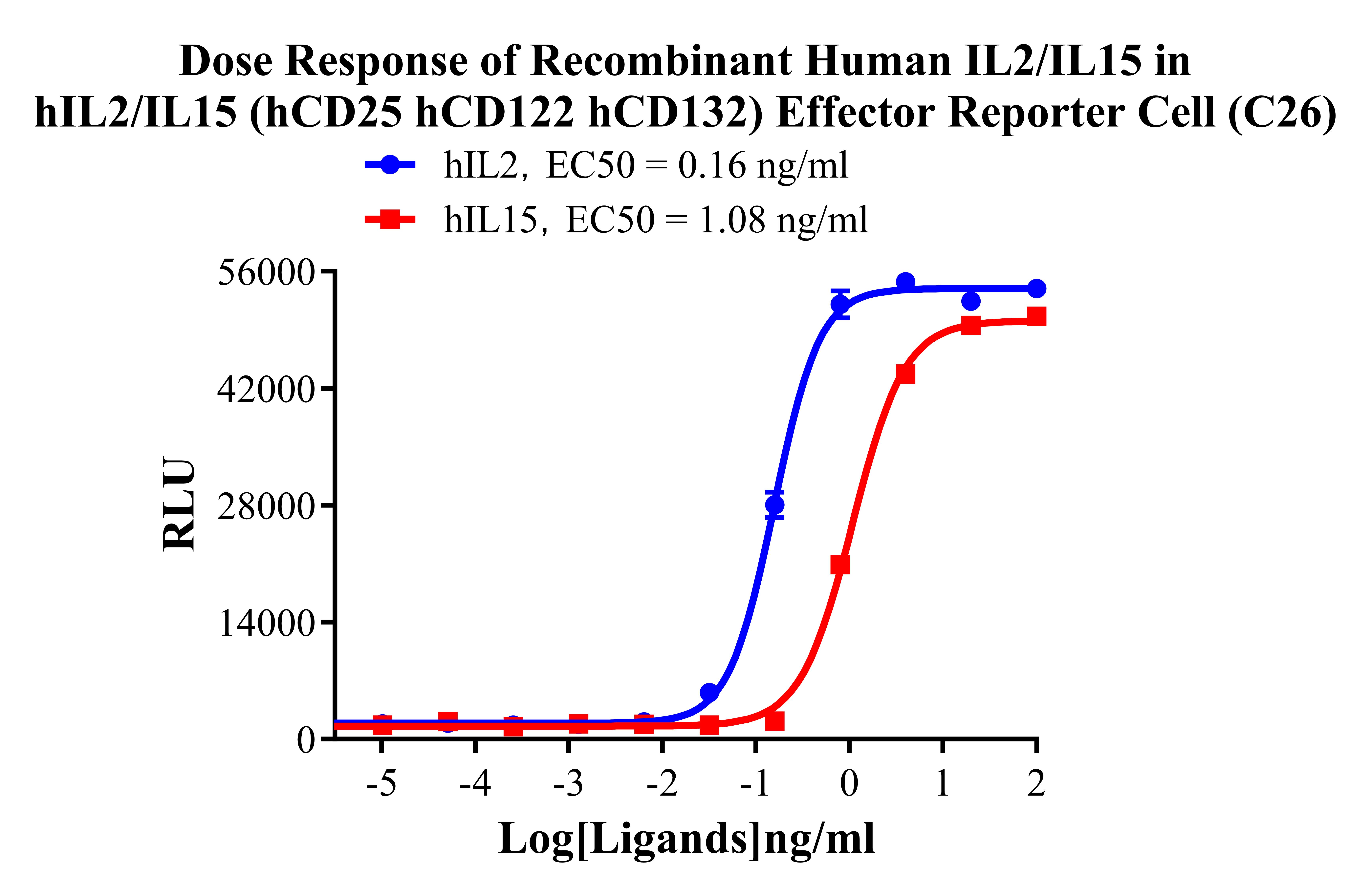 Figure 5. Dose Response of Recombinant Human IL2/IL15 in hIL2/IL15 (hCD25 hCD122 hCD132) Effector Reporter Cell (C26).