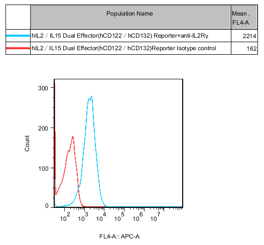 Figure 4. Recombinant hIL2/IL15 Dual Effector(hCD122/hCD132) Reporter Cell constitutively expressing IL2Rγ. |