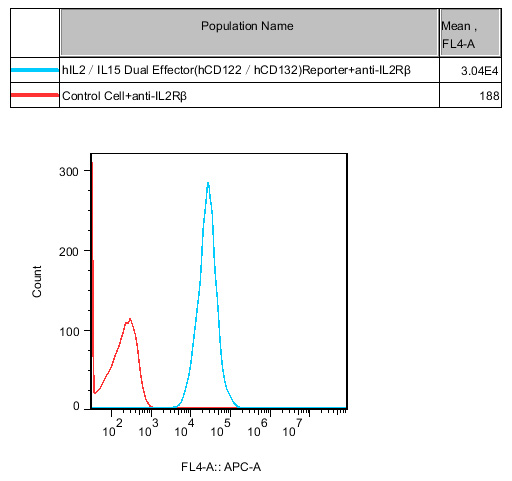 Figure 3. Recombinant hIL2/IL15 Dual Effector(hCD122/hCD132) Reporter Cell constitutively expressing IL2Rβ. |