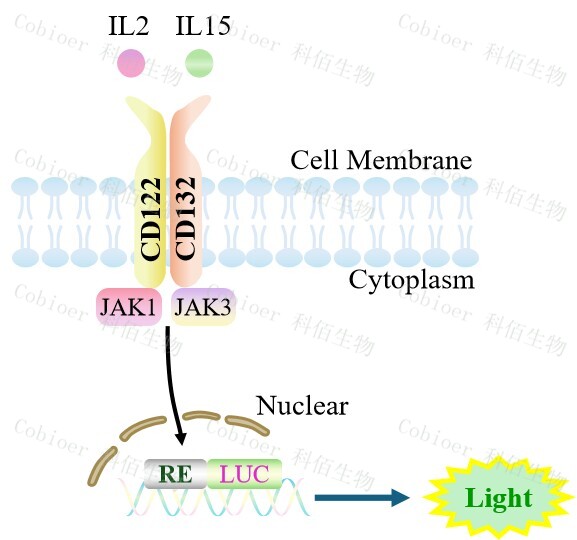 Figure 1. hIL2/IL15(hCD122 hCD132)Effector Reporter Cell 細(xì)胞模型原理圖