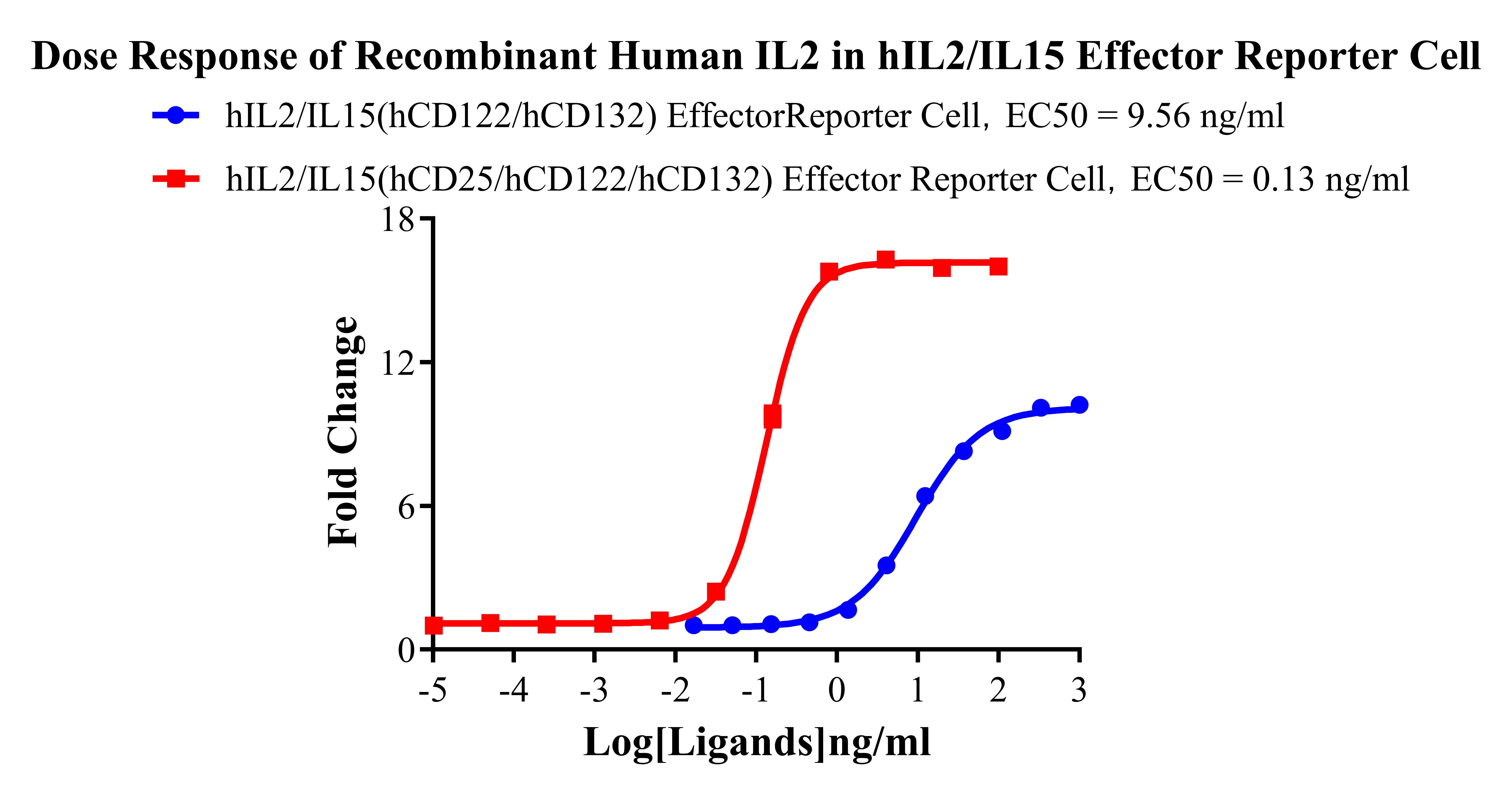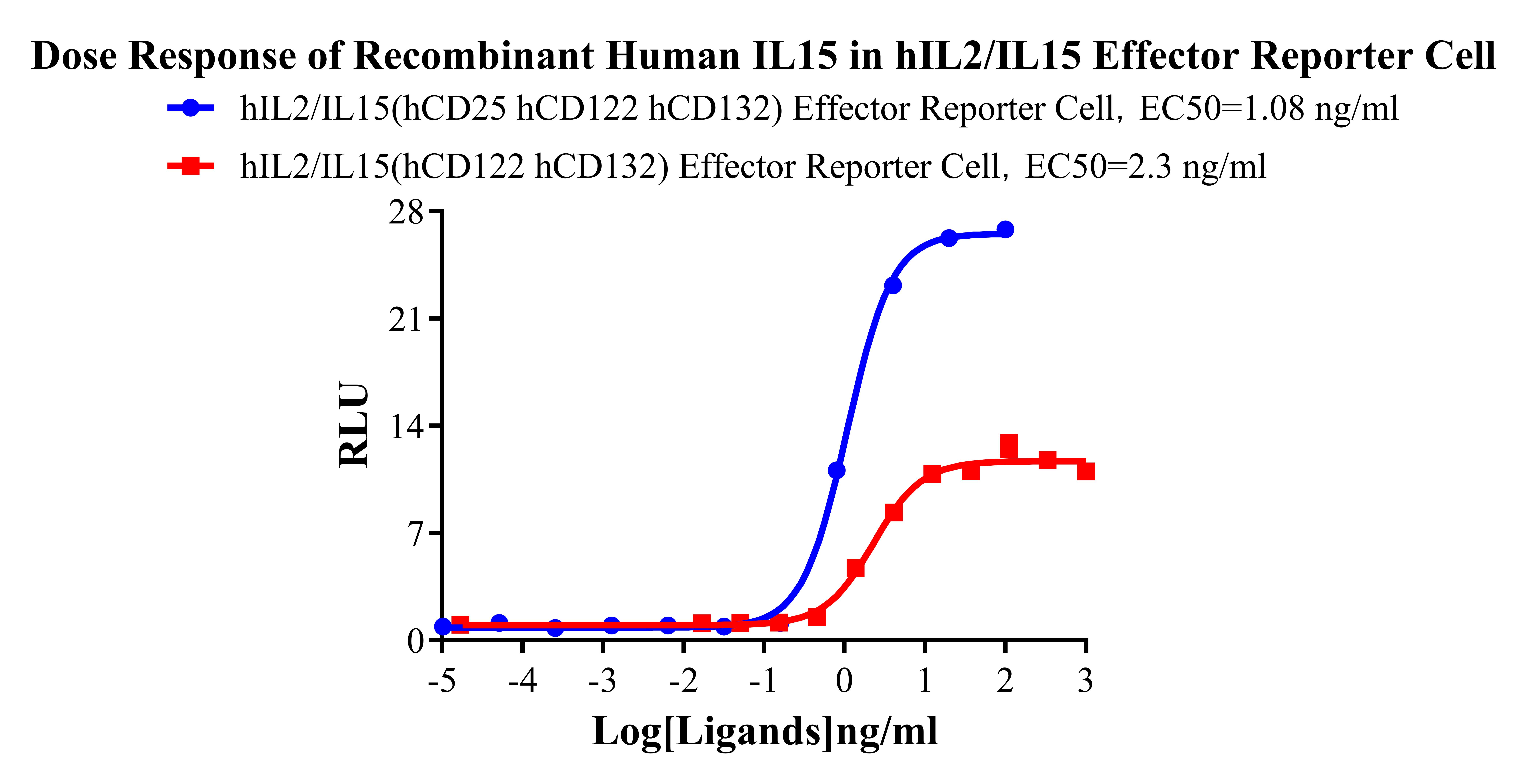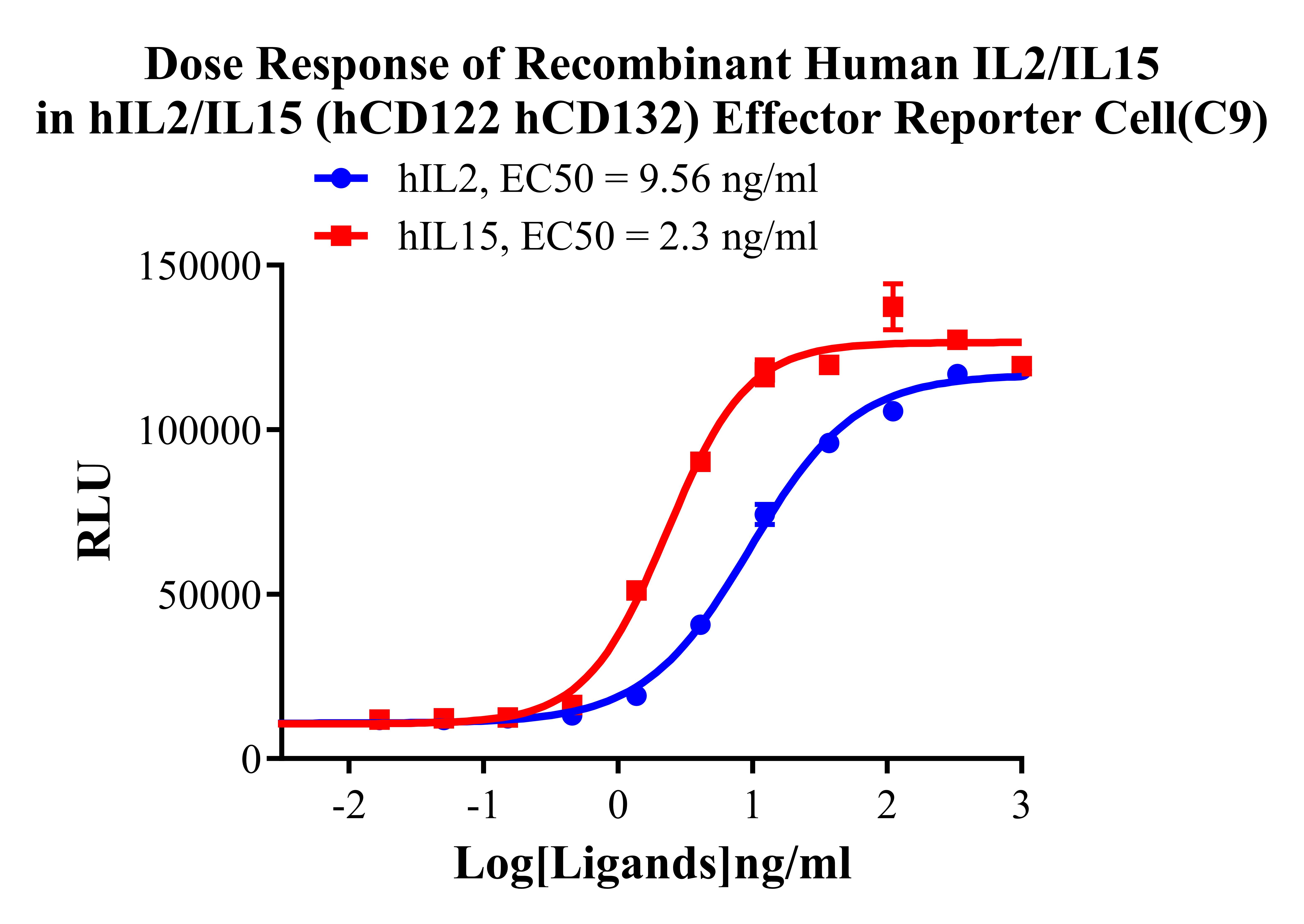 Figure 5. Dose Response of Recombinant Human IL2/IL15 in hlL2/IL15 Effector(hCD122/hCD132) Effector Reporter Cells (C9). |