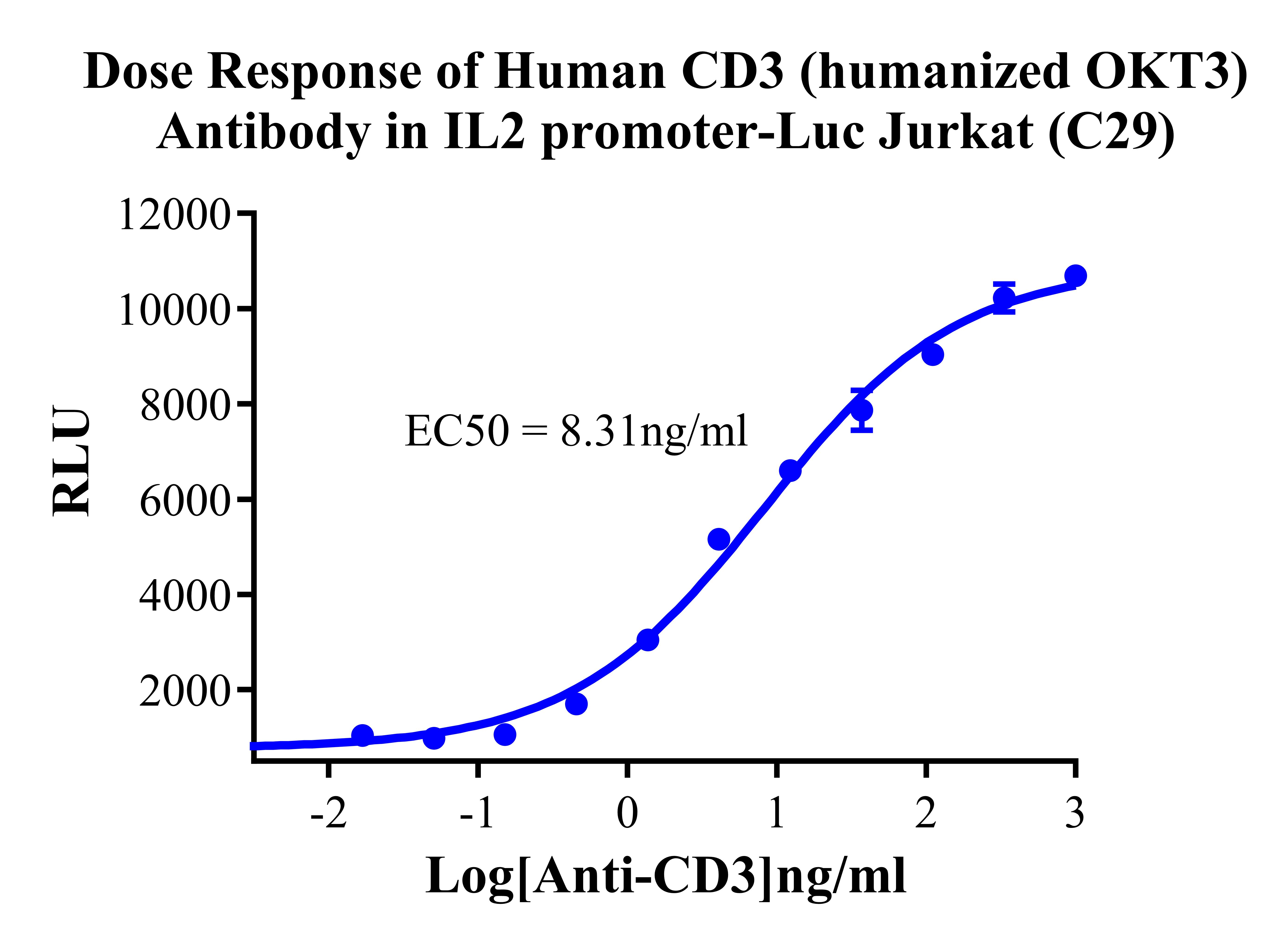 Figure 3. Dose Response of Dose  Response of Human CD3(humanized OKT3) Antibody in  IL2 Promoter-Luc Jurkat (C29).