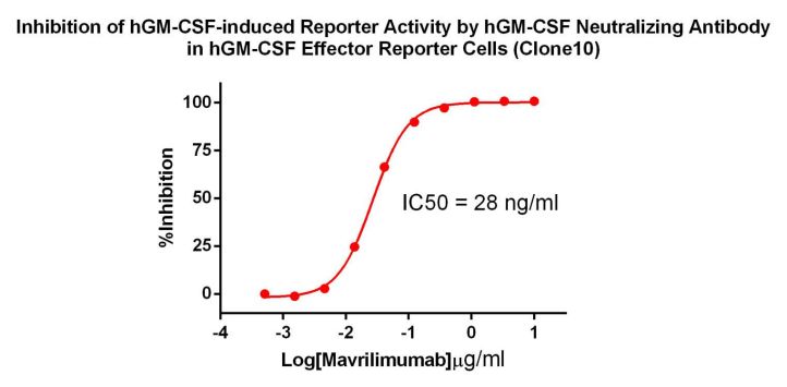 Figure 2. Inhibition of hGM-CSF-induced Reporter Activity by hGM-CSF Neutralizing Antibody in hGM-CSF Effector Reporter Cells (Clone 10).