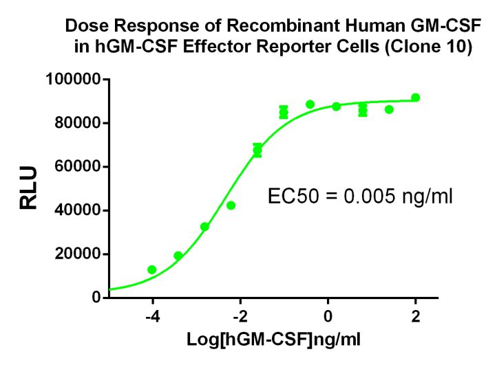 Figure 1. Dose Response of Recombinant Human GM-CSF in hGM-CSF Effector Reporter Cells (Clone 10).