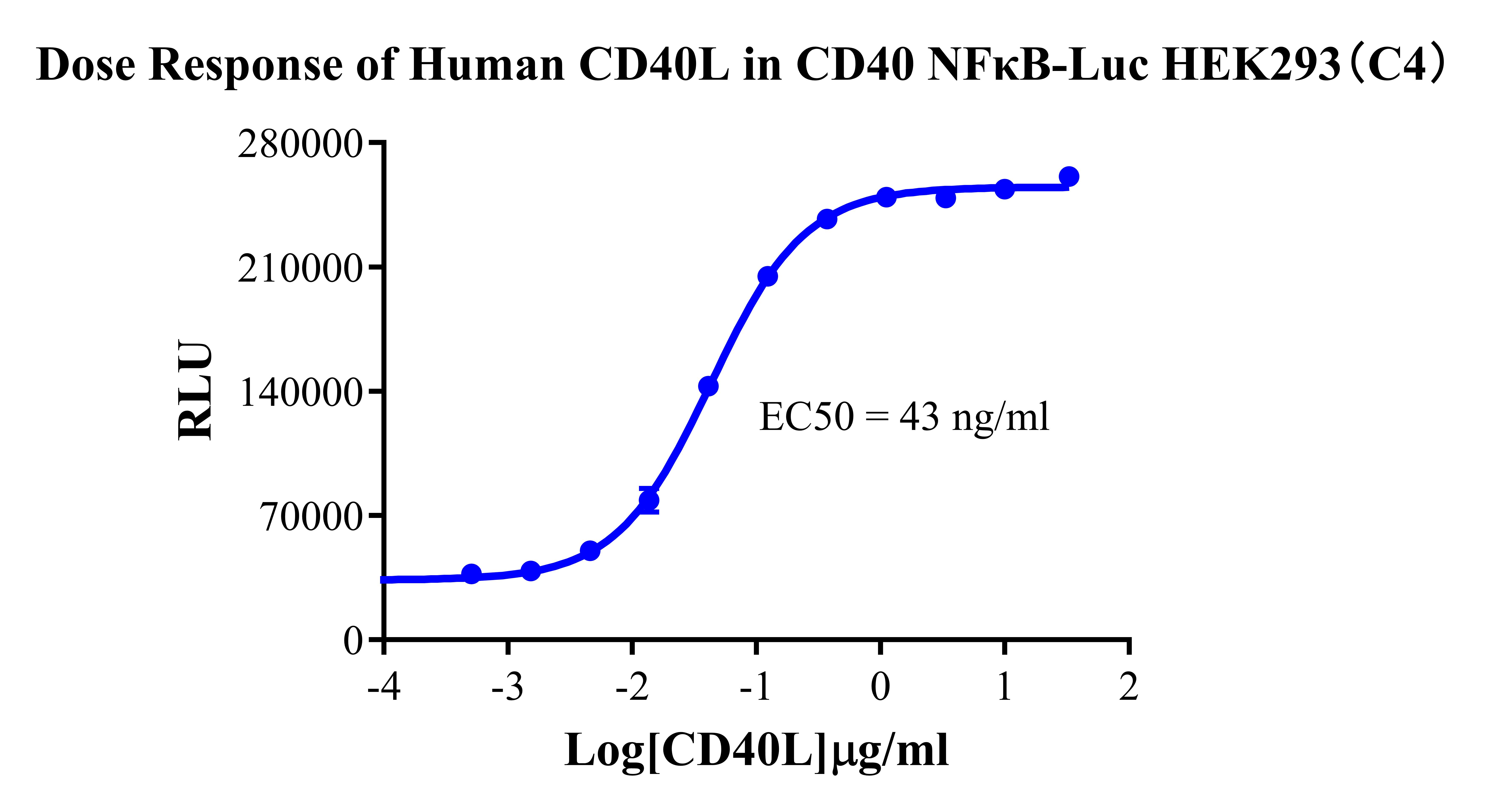 CD40 是腫瘤壞死因子受體超家族(TNFRSF)成員,作為免疫調(diào)節(jié)的關(guān)鍵分子,廣泛 參與 B 細(xì)胞活化、抗原呈遞細(xì)胞(APC)成熟及 T 細(xì)胞免疫應(yīng)答。其配體 CD40L(CD154) 主要表達(dá)于活化的 T 細(xì)胞,通過(guò) CD40-CD40L 互作橋接先天性與適應(yīng)性免疫,是腫瘤免疫 治療、自身免疫病及感染性疾病的熱門靶點(diǎn)。 CD40 信號(hào)轉(zhuǎn)導(dǎo)主要利用 TNF 受體相關(guān)因子的銜接蛋白,導(dǎo)致經(jīng)典和非經(jīng)典 NFκB 通 路、MAPK、PI3K 和 PLCγ的激活。它們的激活導(dǎo)致特征性下游效應(yīng),包括轉(zhuǎn)錄激活、細(xì) 胞骨架重排和細(xì)胞存活。 |