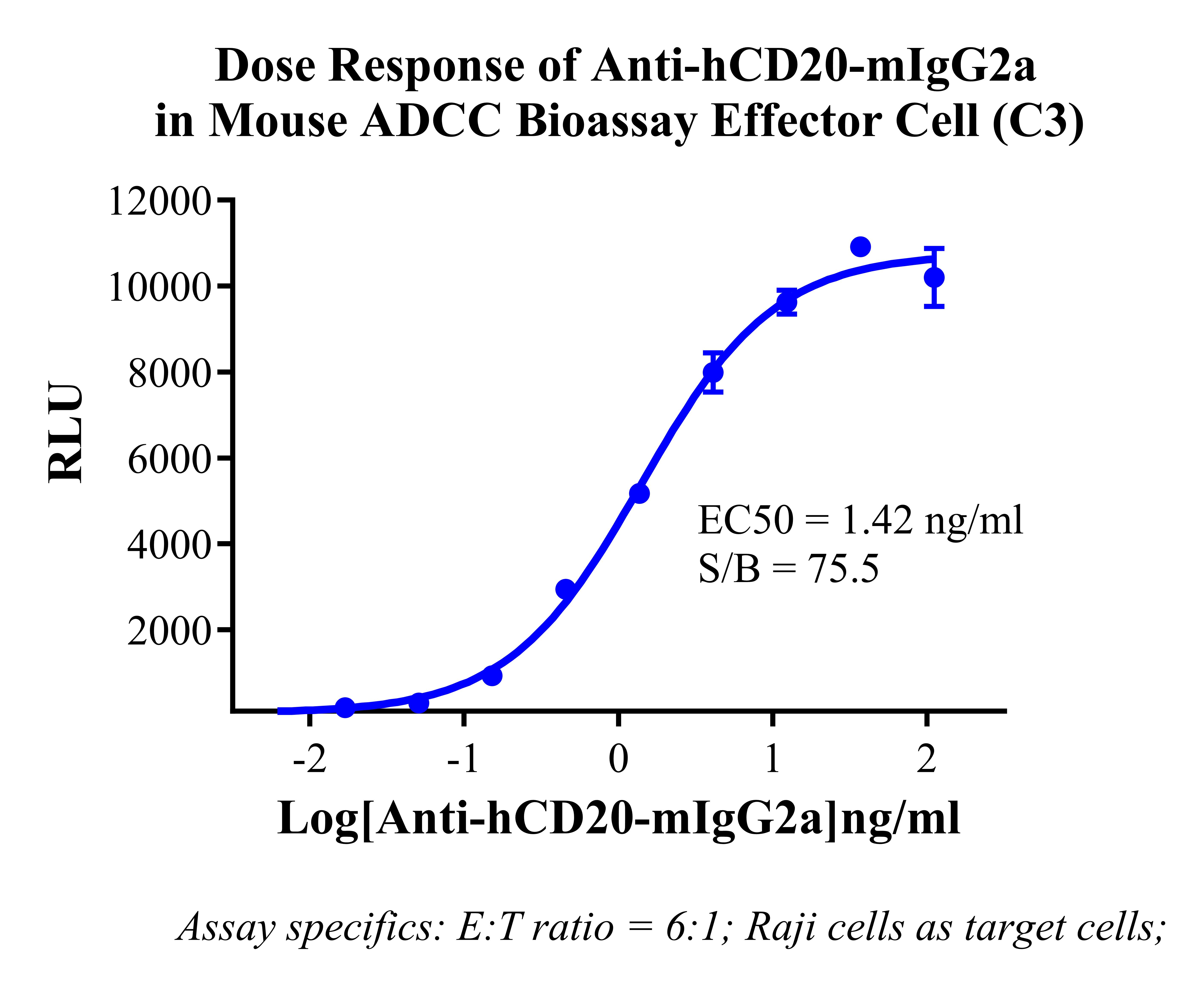 Figure 2. Dose response of Anti-hCD20-mlgG2a in Mouse ADCC Bioassay Effector Cell (C3).