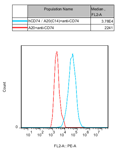 IV. Representative Data![]() Figure 1. Recombinant hCD74/A20 stably expressing hCD74. |