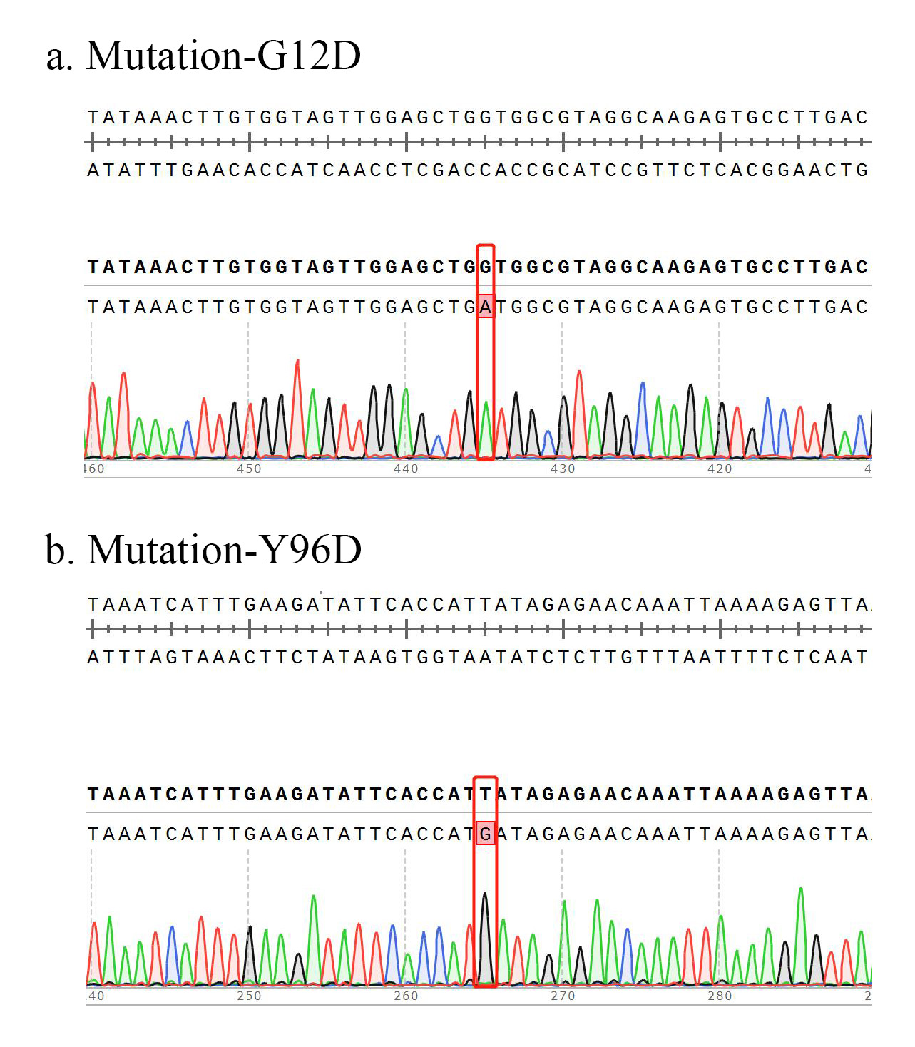 1. WB of KRAS[G12D&Y96D] BaF3 Figure 3. Sanger of KRAS[G12D&Y96D] BaF3 |