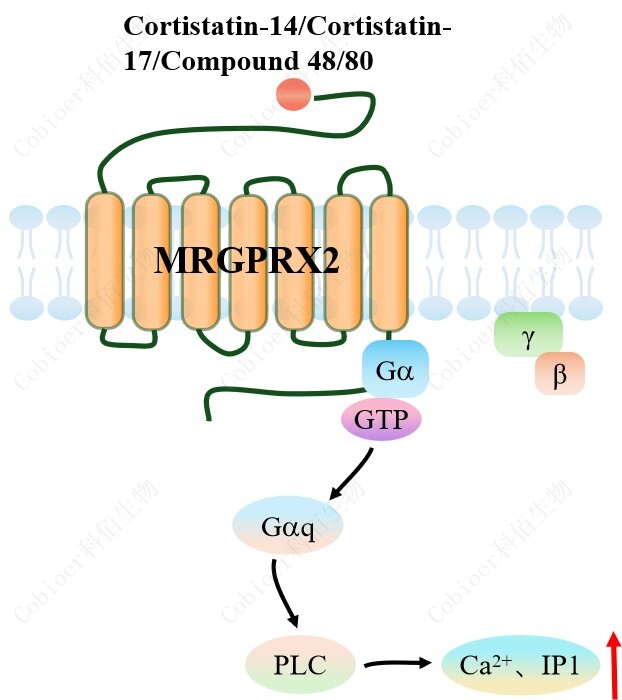 MRGPRX2 Gα15 HEK293 細(xì)胞藥靶模型很好的模擬了體內(nèi) MRGPRX2&Gα15 的信號(hào)轉(zhuǎn) 導(dǎo)過程,原理見圖所示。