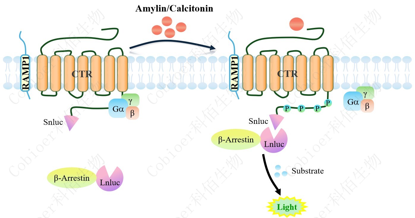 ![]() Figure 1. CTR&RAMP1 β-Arrestin CHO 細(xì)胞模型原理圖