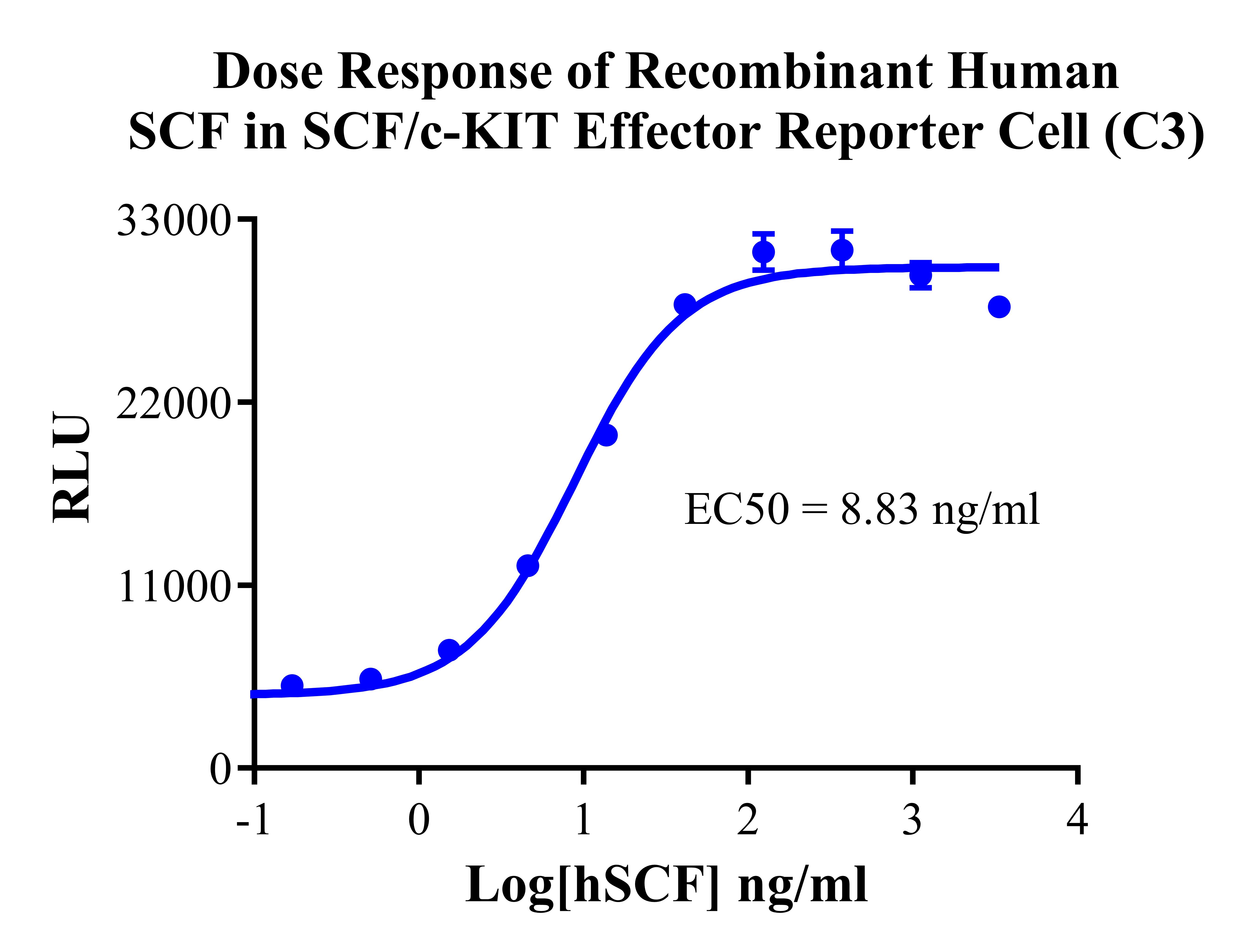 Figure 3. Dose Response of Recombinant Human SCF in SCF/c-KIT Effector Reporter Cell(C3).