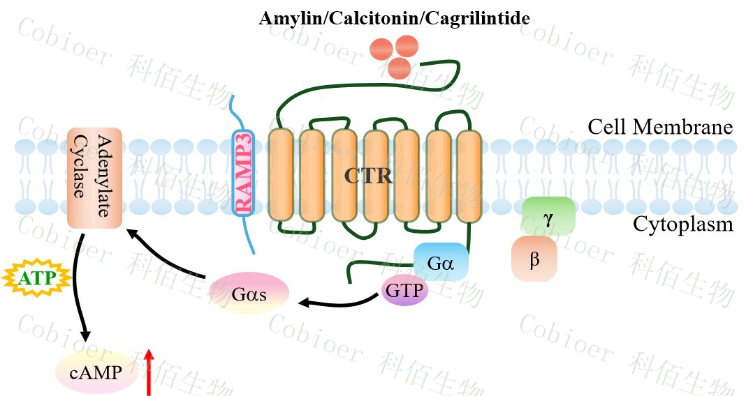 降鈣素基因相關(guān)肽(CGRP)家族包括 CGRP 本身、降鈣素(CT)、腎上腺髓質(zhì)素 (AM)和胰島淀粉樣肽(AMY)。 |