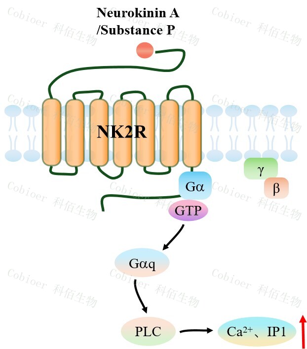 速激肽(Tachykinins )是分布在哺乳動(dòng)物中樞和周圍神經(jīng)系統(tǒng)中的一類神經(jīng)肽。速激 肽物質(zhì) P(SP)、神經(jīng)激肽 A(NKA)和神經(jīng)激肽 B(NKB)共享一個(gè)保守的 C 端基序, 對(duì)速激肽受體(NK1R、NK2R 和 NK3R)的激活至關(guān)重要。NKA 優(yōu)先激活與 Gα偶聯(lián)的 NK2R,而 SP 和 NKB 分別優(yōu)先結(jié)合 NK1R 和 NK3R。三種速激肽都能夠在所有速激肽受 體類型中表現(xiàn)為完全激動(dòng)劑。 NK2R 是一種 GPCR,普遍存在于中樞和周圍神經(jīng)系統(tǒng),然而,有研究發(fā)現(xiàn),NK2R 與 血紅蛋白 A1c(HbA1c)水平顯著相關(guān)。HbA1c 是評(píng)估長期血糖控制的重要指標(biāo),表明 NK2R 可能在糖代謝調(diào)控中發(fā)揮關(guān)鍵作用。