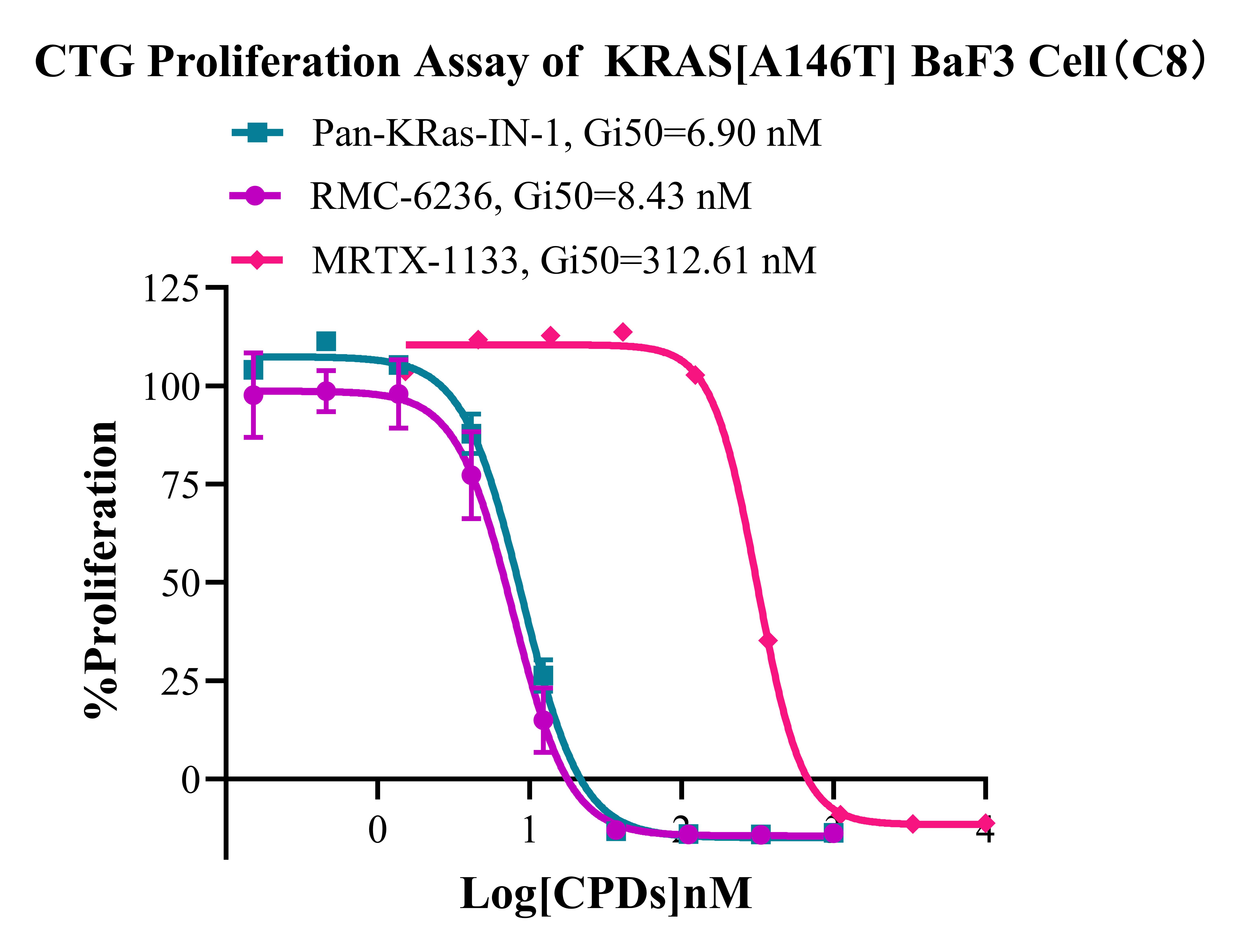 3. Anti-proliferation assay Figure 4. CTG Proliferation Assay of KRAS [A146T] BaF3 Cell(C8). |