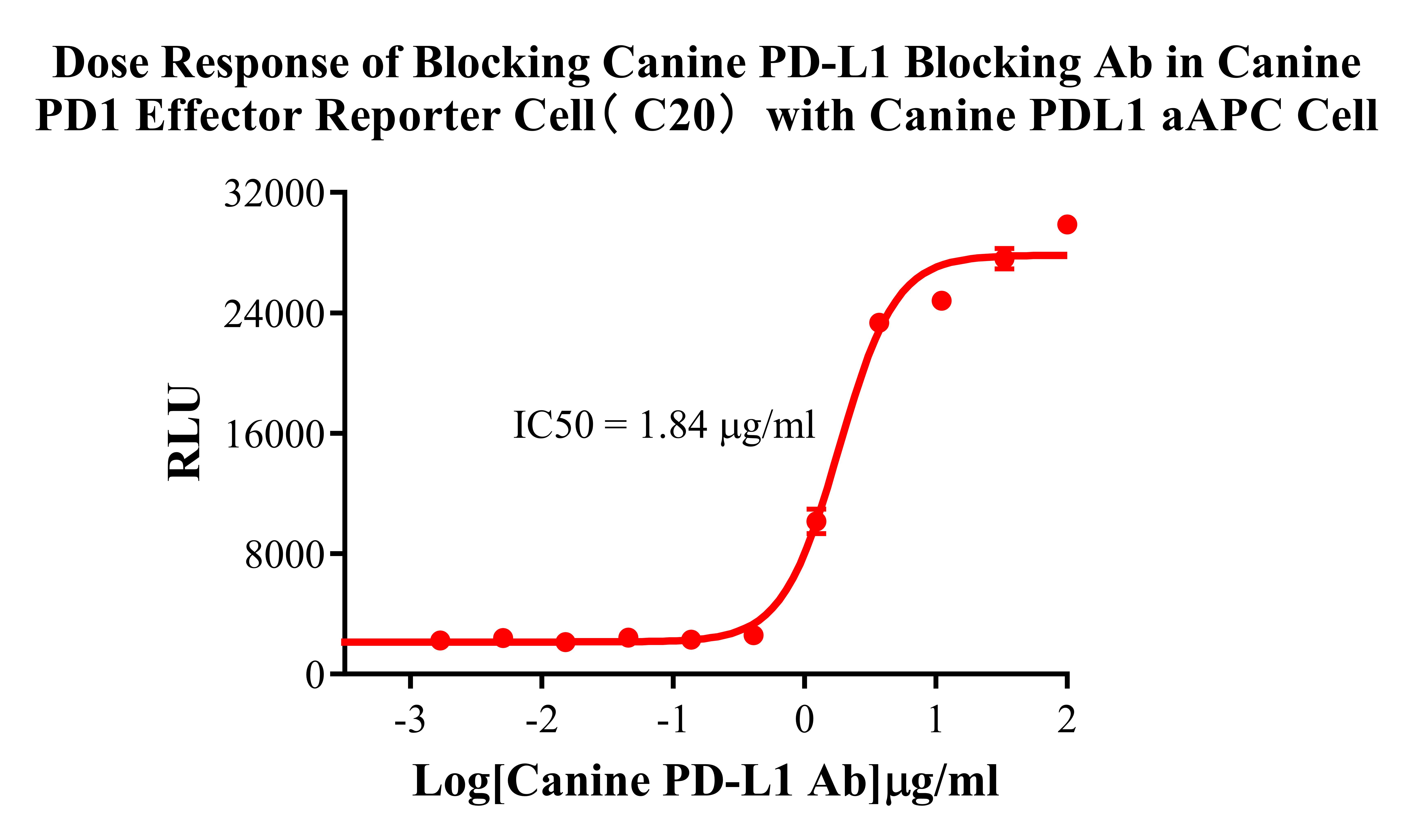 Figure 3. Dose Response of Blocking Canine PD-L1 Blocking Ab in Canine PD1 Effector Reporter Cell ( C20) with Canine PDLl  aAPC Cell.