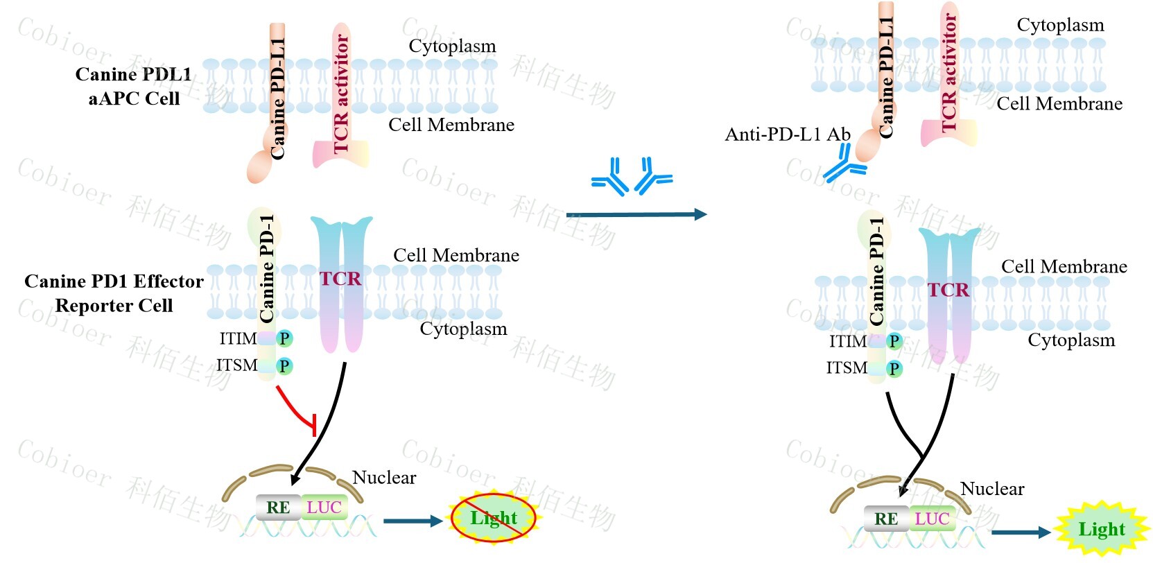 Figure 1. Canine PD1 Effector Reporter Cell 細(xì)胞模型原理圖