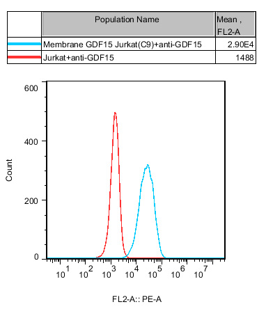 Membrane GDF15 Jurkat 細(xì)胞,在 Jurkat 細(xì)胞的基礎(chǔ)上,穩(wěn)定表達(dá)人 GDF15。 |