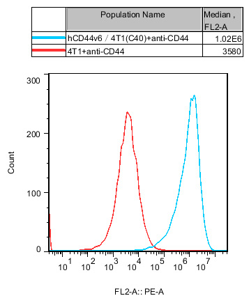 IV. Representative Data![]() Figure1.Recombinant hCD44v6/4T1 stably expressing hCD44v6. |