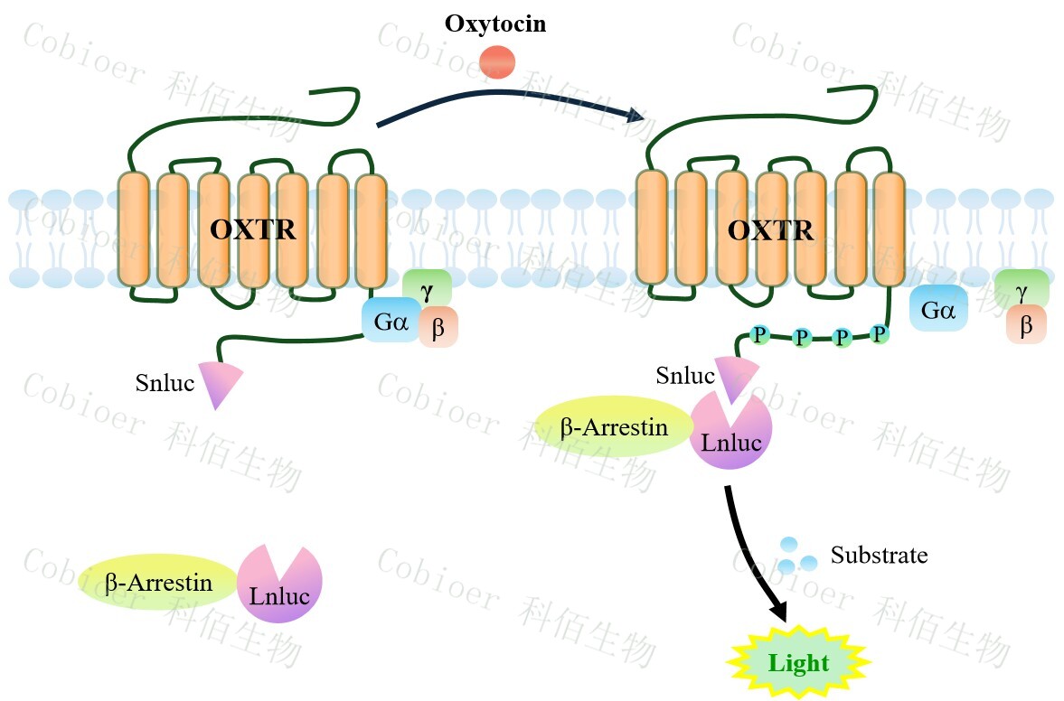 OXTR 在其配體的刺激下,會招募β-Arrestin 并與之結(jié)合,根據(jù)此原理,我們開發(fā)的 OXTR β-Arrestin CHO 報(bào)告基因細(xì)胞上穩(wěn)定表達(dá)了 OXTR 以及融合熒光素酶報(bào)告基因的 β-Arrestin。。![]() Figure 1. OXTR β-Arrestin CHO 細(xì)胞模型原理圖