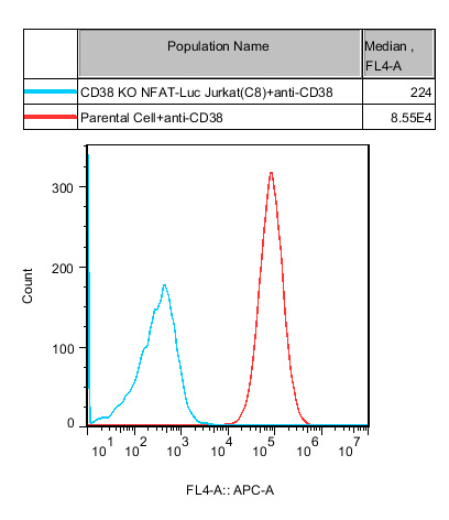 ![]() Figure 2. Recombinant CD38 KO NFAT-Luc Jurkat Cell stably expressing CD38. |