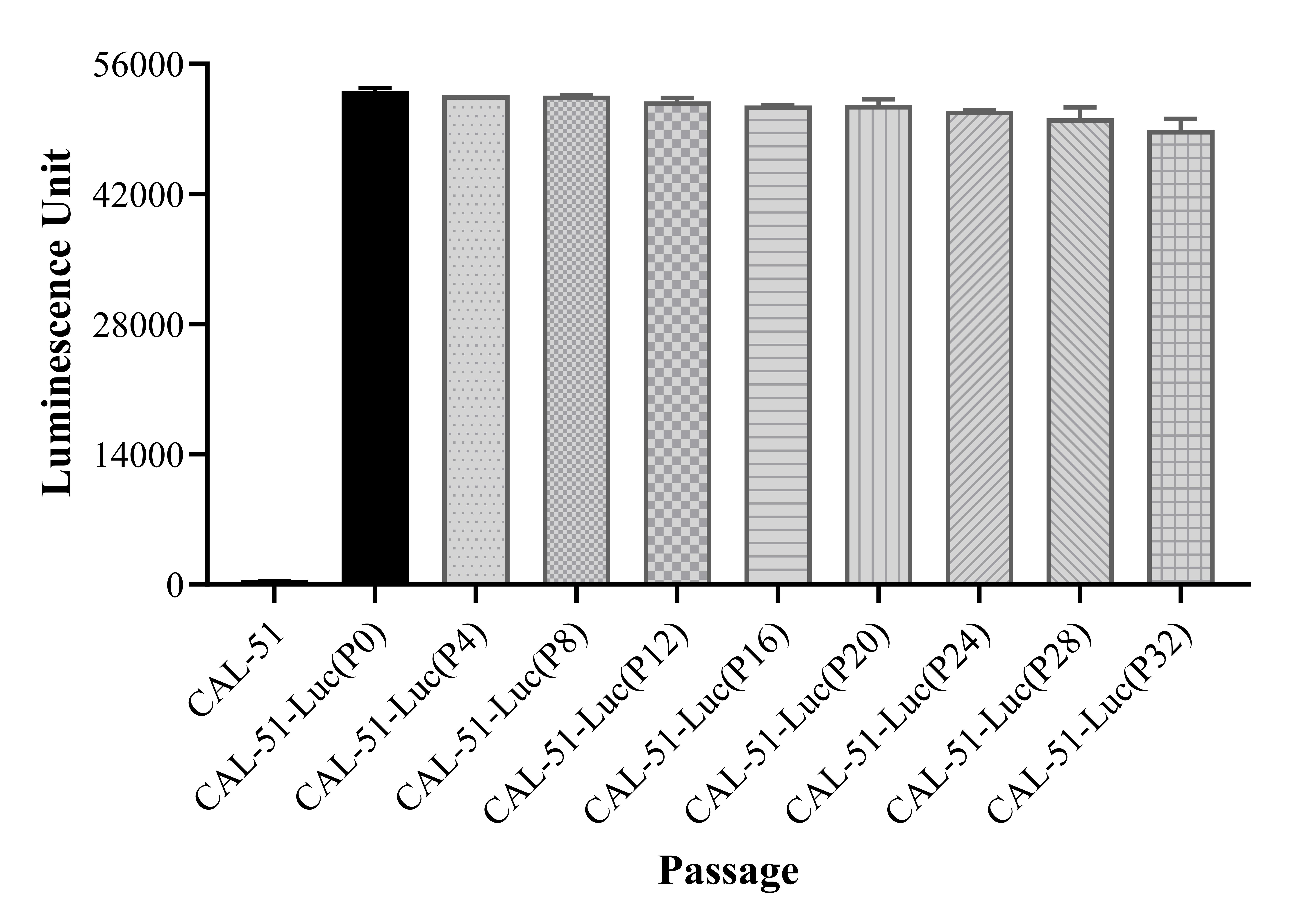 Figure 1. Stablity test results. CAL-51-Luc showed at least 32 passage stability with similar luminescence unit.