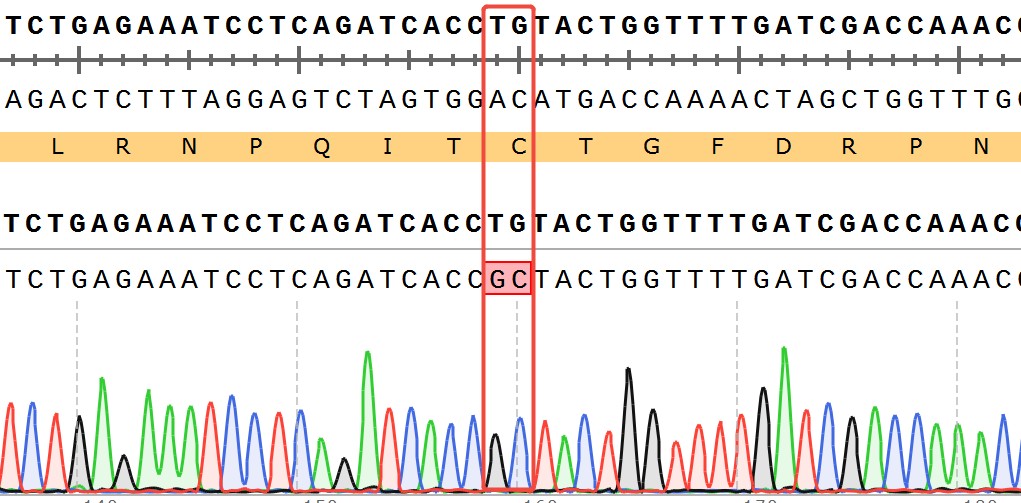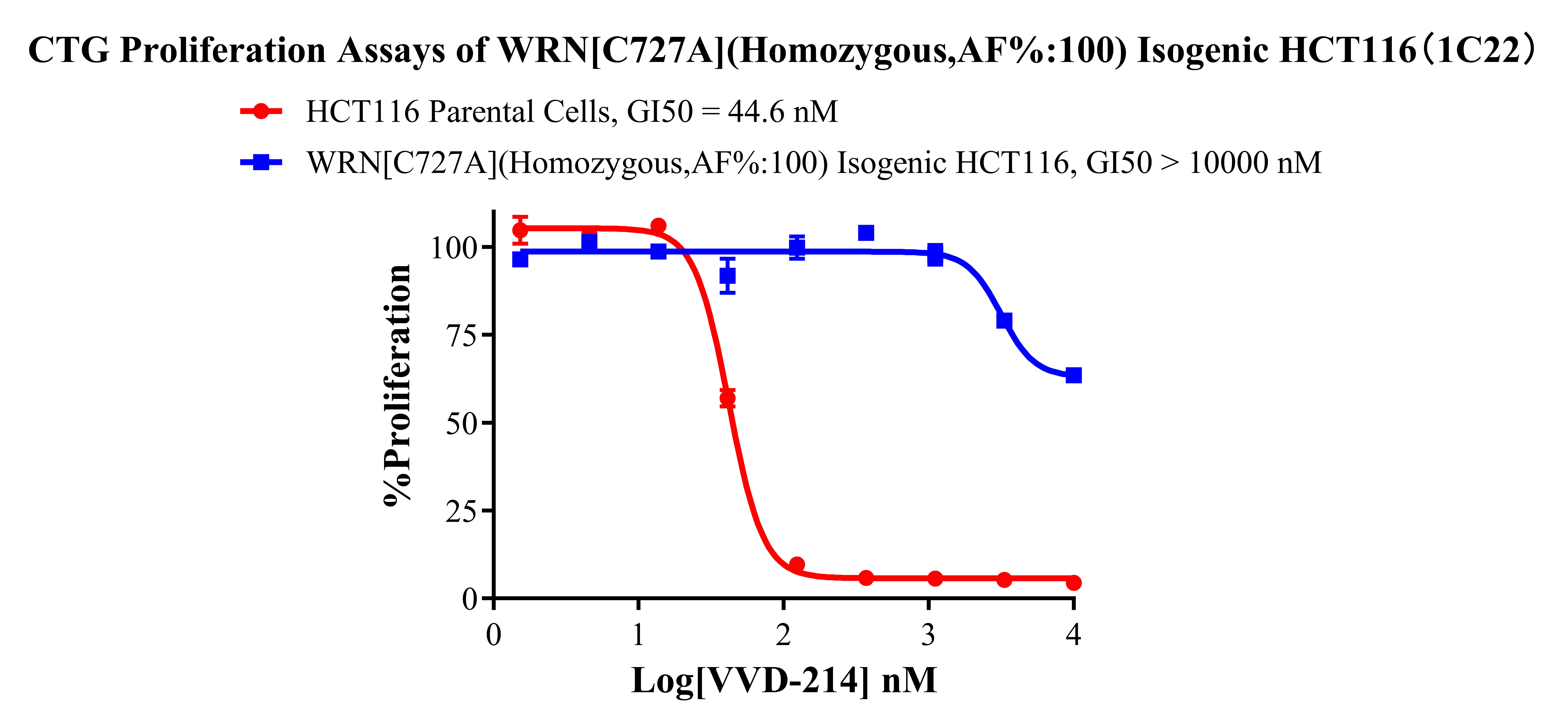 WRN[C727A](Homozygous,AF%:100) Isogenic HCT116 藥靶細(xì)胞,通過 基因編輯的方式將 WRN 的 727 位氨基酸胱氨酸(C)突變?yōu)楸彼幔ˋ)。![]() Figure 1. WRN[C727A](Homozygous,AF%:100) Isogenic HCT116 原理示意圖 |
