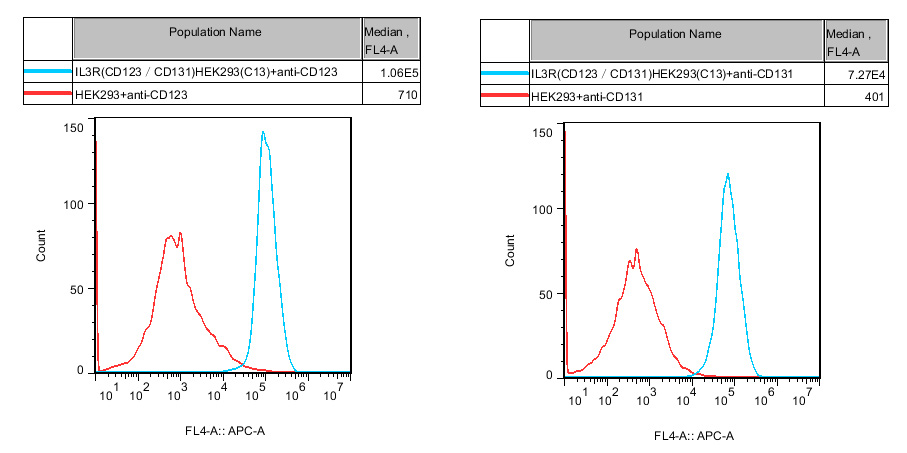 IL3R(CD123/CD131) HEK293 細(xì)胞,在 HEK293 細(xì)胞的基礎(chǔ)上,穩(wěn)定表 達(dá)人 IL3R(CD123/CD131)。 |