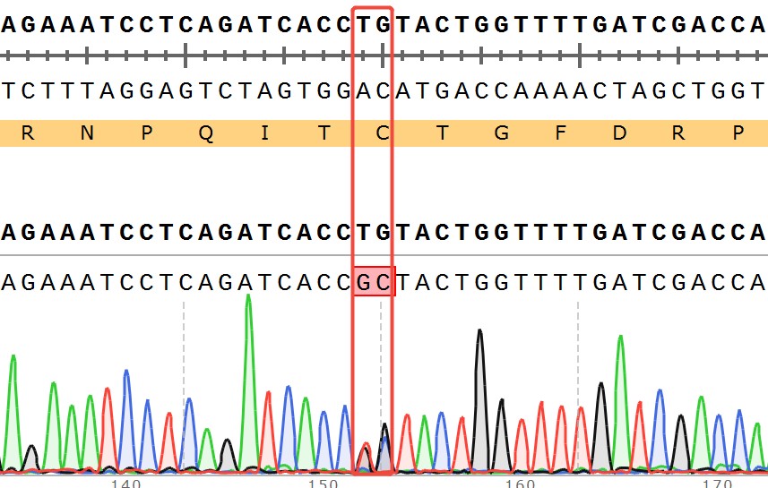 Figure 2. Sanger of WRN[C727A](Heterozygous,AF%:50) Isogenic HCT116