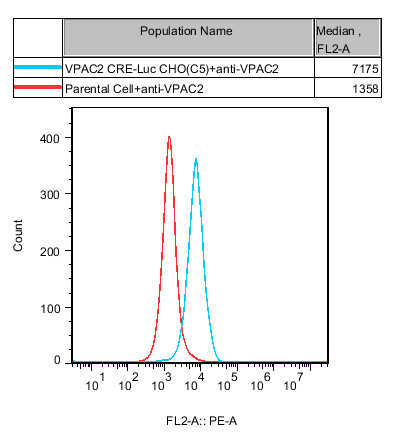 VPAC2 CRE-Luc CHO 報(bào)告基因藥靶模型很好的模擬了體內(nèi) VPAC2 的信號(hào)轉(zhuǎn)導(dǎo)過(guò)程, 原理見(jiàn)下圖所示。![]() Figure 1. VPAC2 CRE-Luc CHO 細(xì)胞模型原理圖 |