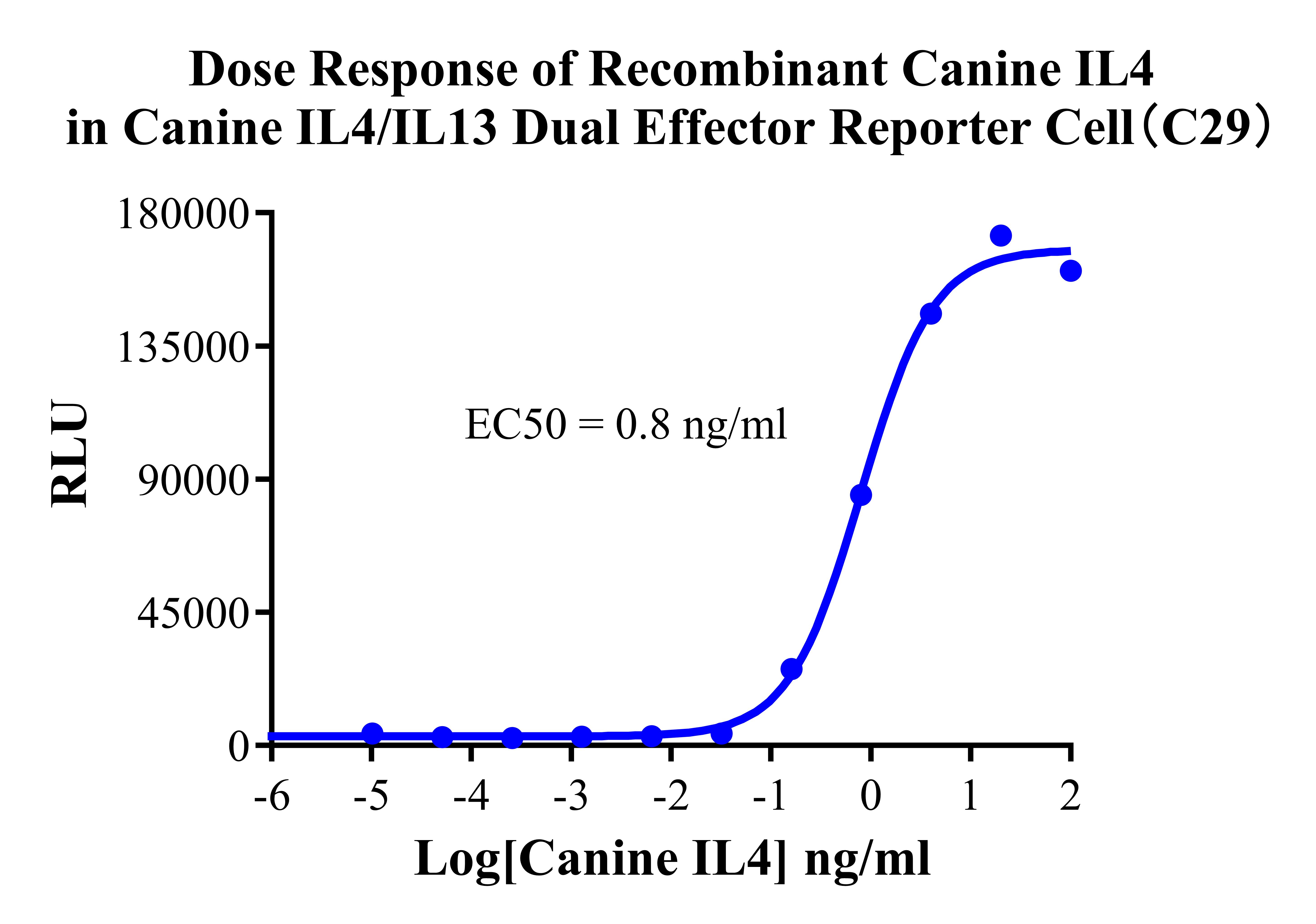 Figure 2. Dose Response of Recombinant Canine IL4 in Canine IL4/IL13 Dual Effector Reporter Cell(C29).
