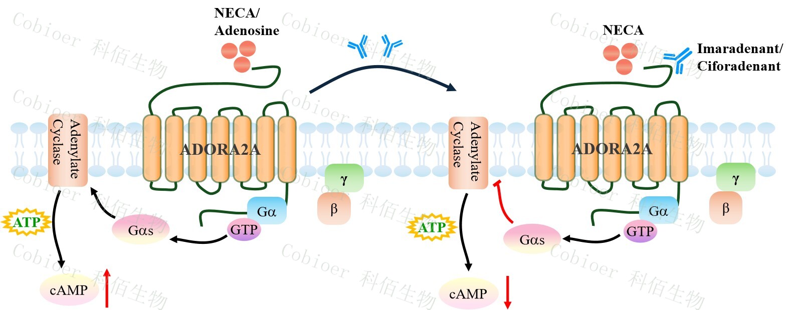 ADORA2A,又名腺苷 A2a 受體,是一種屬于 G 蛋白偶聯(lián)受體家族的蛋白質(zhì)。它是腺 苷的受體,參與了多種生理和病理過程。主要富集于 大腦紋狀體多巴胺能通路(與 D2 受 體共定位)、免疫細(xì)胞(T 細(xì)胞/巨噬細(xì)胞)及冠狀動(dòng)脈。 |