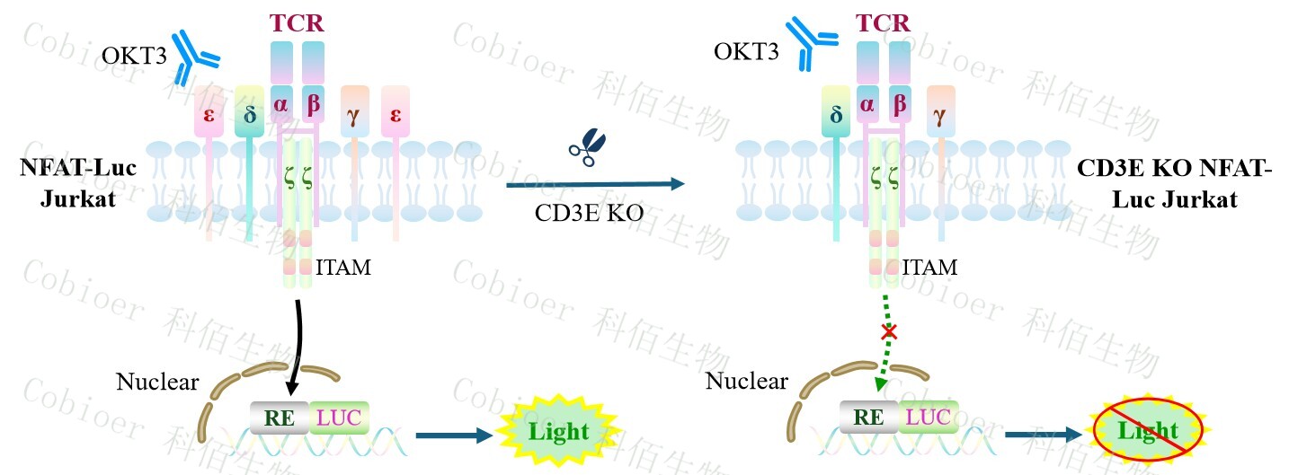 CD3E KO NFAT-Luc Jurkat 細(xì)胞模型原理圖