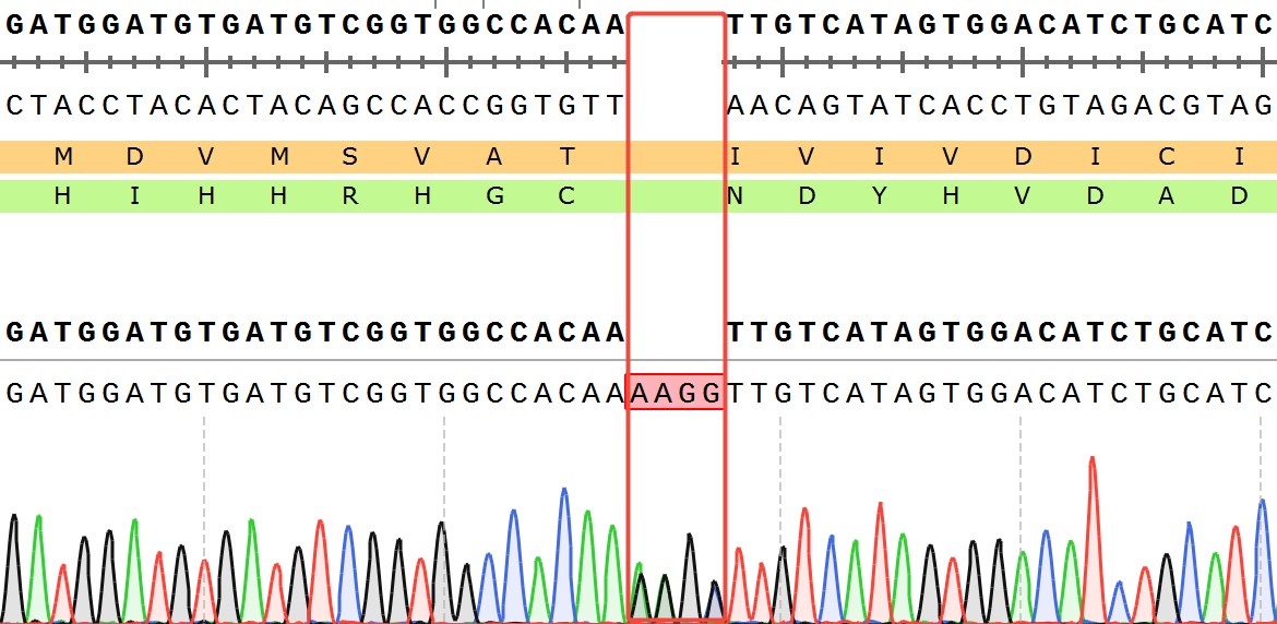 Figure 2. CD3E(NM_000733.4):c.397_398ins4bp/CD3E:p.I133Kfs