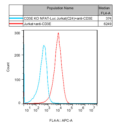Figure 3. Recombinant CD3E KO NFAT-Luc Jurkat stably expressing CD3E.
