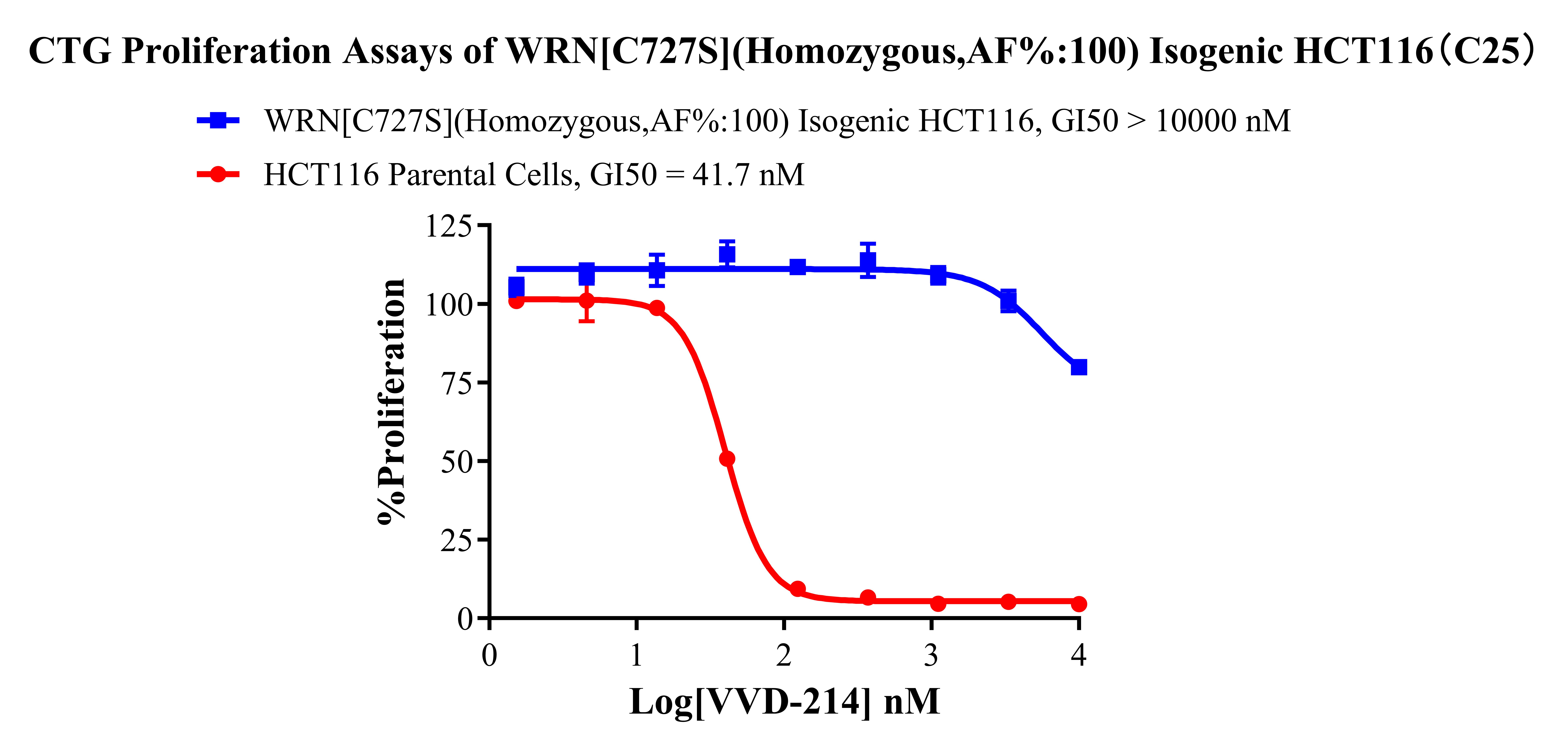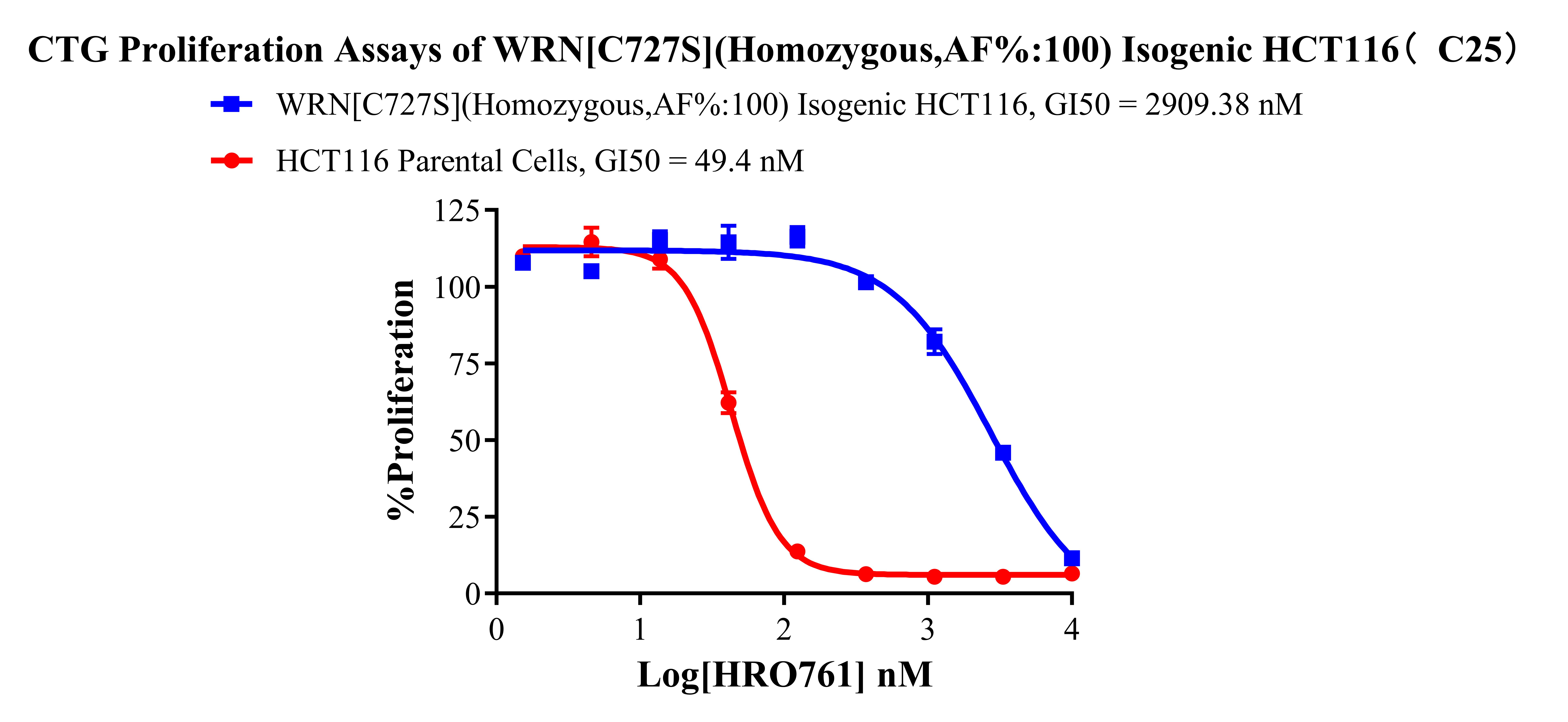 Figure 2. CTG Proliferation Assays of WRN[C727S](Homozygous,AF%:100)Isogenic HCT116(C25).