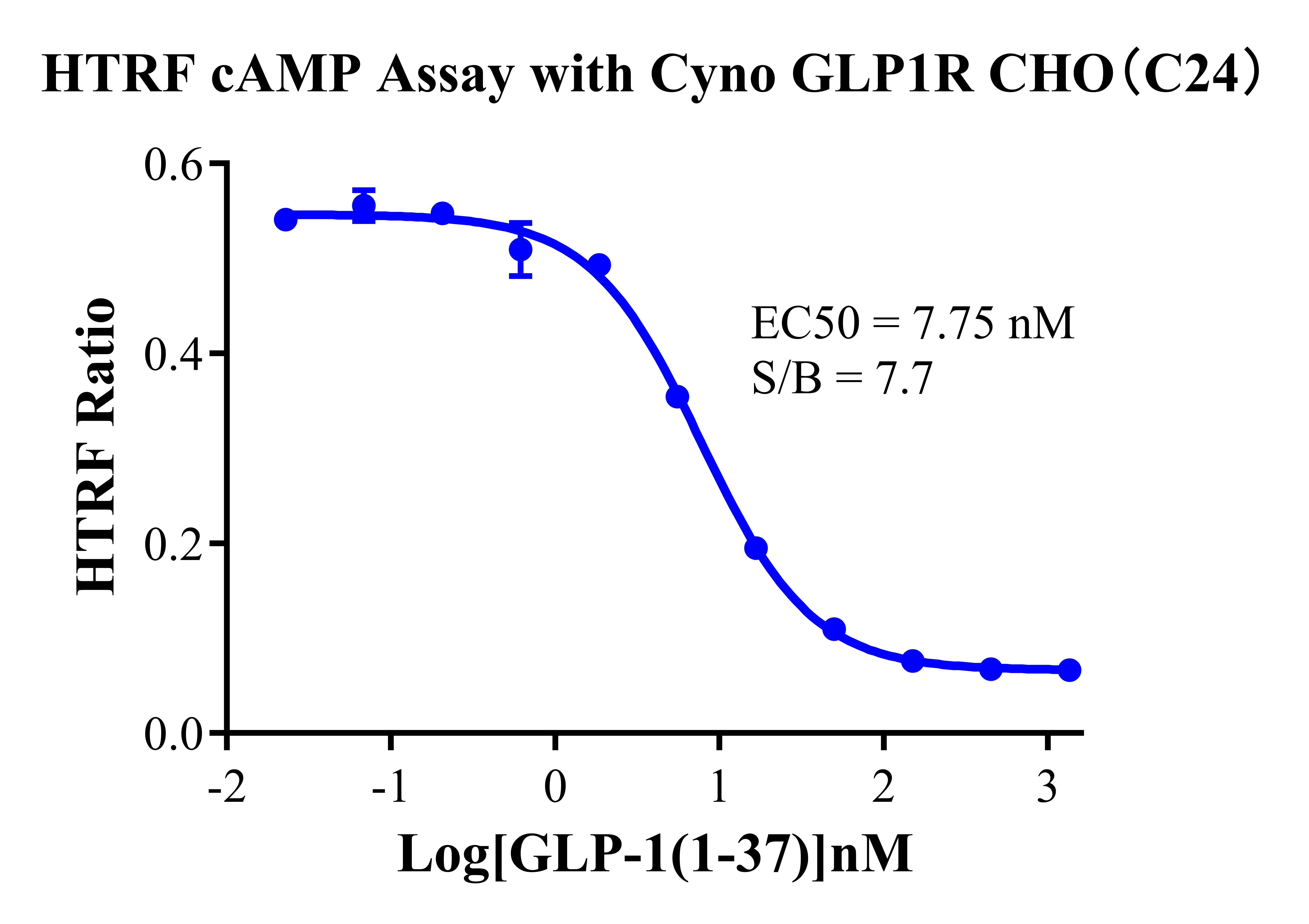 GLP1R 藥靶模型很好的模擬了體內(nèi) GLP1R 的信號轉(zhuǎn)導(dǎo)過程,原理見下圖所示。 ![]() Figure 1. Cyno GLP1R CHO 細(xì)胞模型原理圖